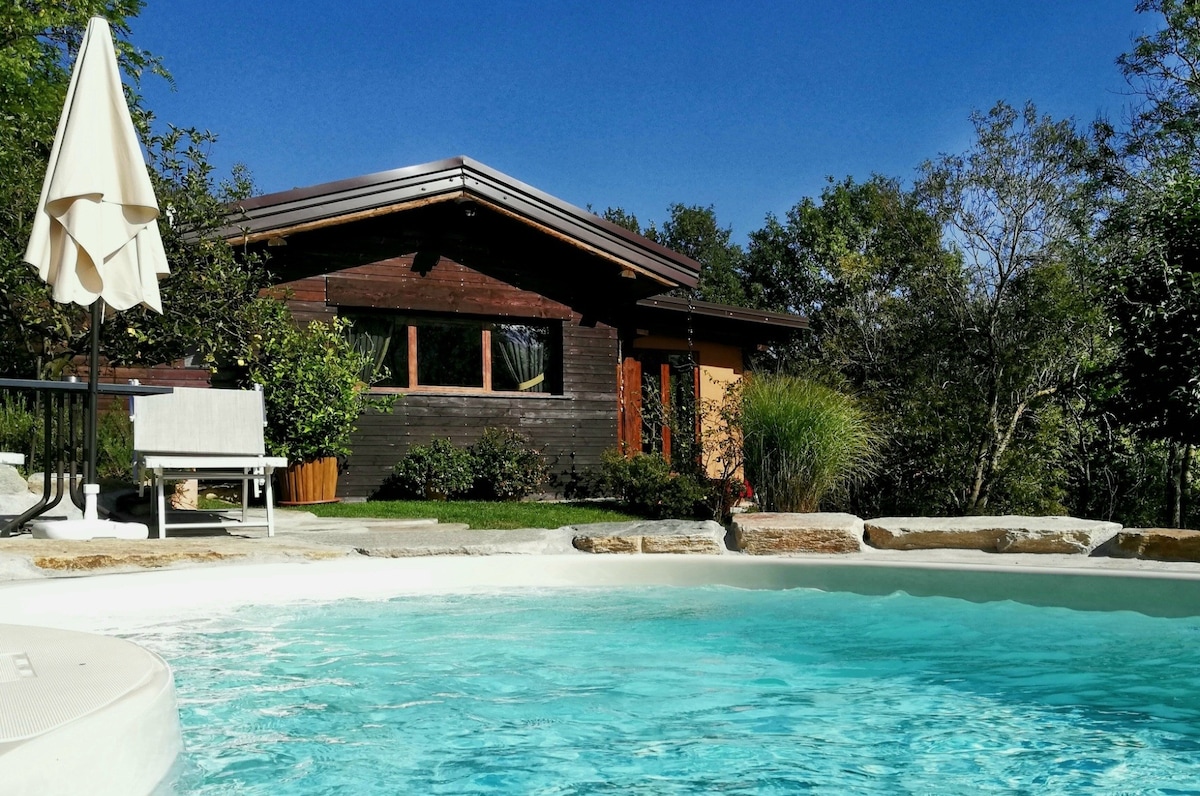 In the UNESCO territory of the Alps and near the Langhe, a charming small wooden house, located in a tiny 7-house hamlet, immersed in the woods. Intimate and cozy, it overlooks your fantastic private pool and is surrounded by a large, flowering garden, all exclusively for you. Sit on the cool grass in the early morning. Listen to the birdsong and soak in the peace and nature. Your holiday will be unforgettable: discover the most authentic side of Piedmont and embrace total relaxation.