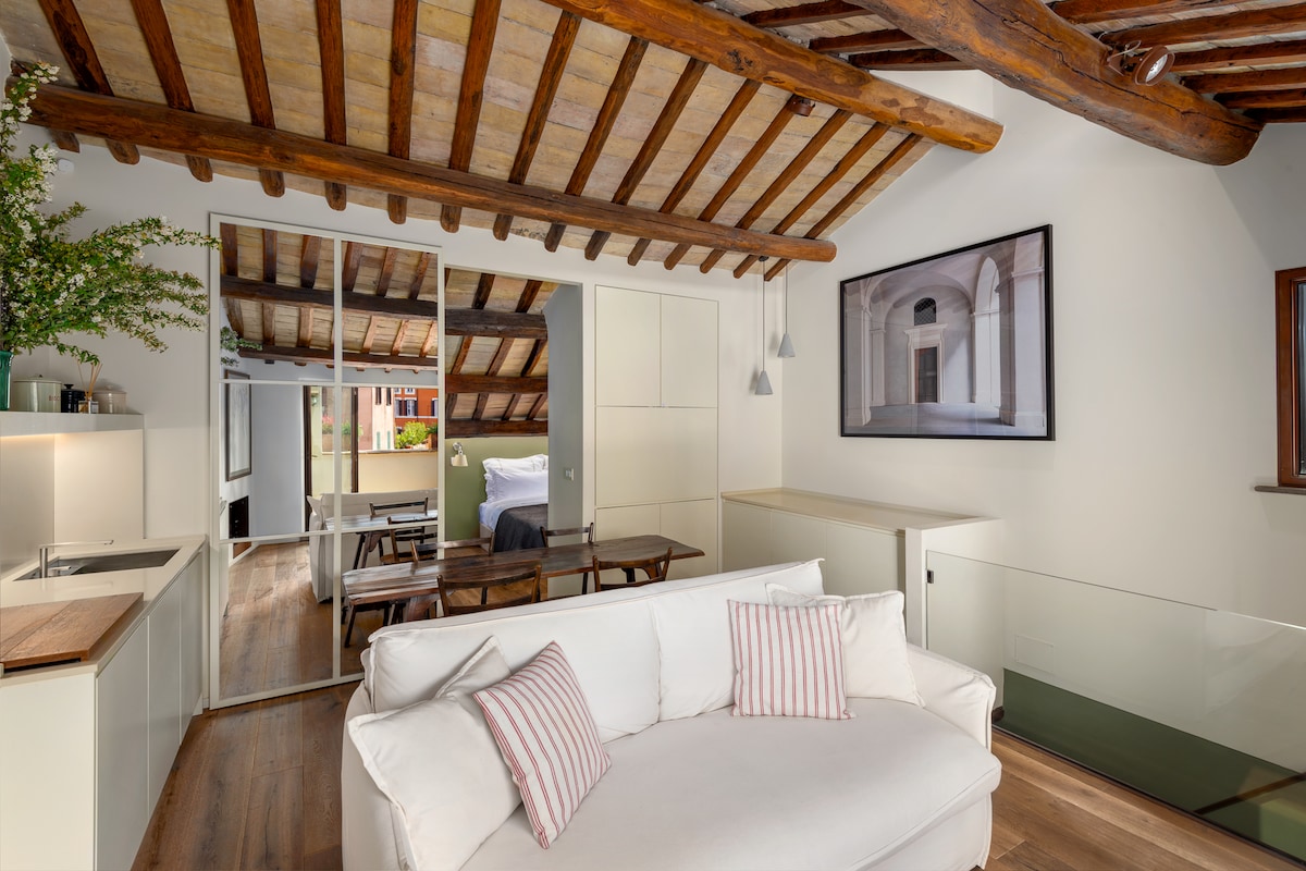 Incantevole, accogliente e raffinato appartamento collocato nello storico Borgo Pio uno dei quartieri più belli e suggestivi del centro di Roma. Sei nel cuore di Roma, a pochi passi dalla Basilica di San Pietro e dal Vaticano. L'ubicazione è strategica per visitare a piedi la città. Inoltre la zona è sicura perchè adiacente al Vaticano. Qui trascorrerai un indimenticabile soggiorno a Roma! Caratteristiche del loft sono la luminosità, il fascino e l'armonia.