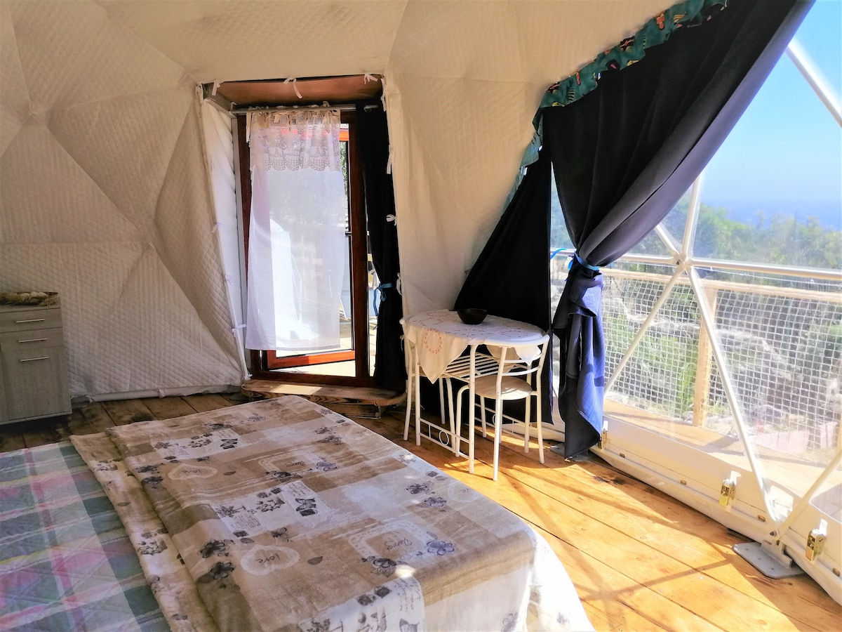 The geodesic dome is not just an independent and comfortable location, glamping style, it is a true experience. The sea view in front of the bubble dome, stargazing at night, the spacious, perfectly equipped outdoor veranda, and the hammock for relaxation. Suitable for a couple, romantic and exclusive. Private bathroom with shower, refrigerator, and air conditioning for your comfort. Free Wifi and parking. A large common area equipped with a kitchen, living room, library, gym