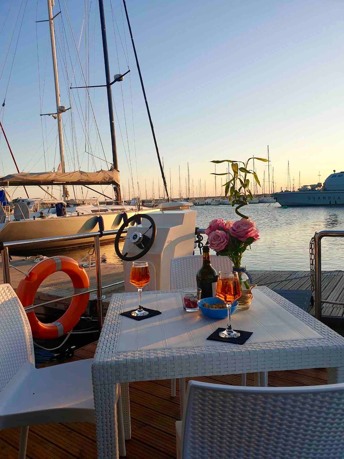La nostra Houseboat Seabreeze è ormeggiata nel porto di Alghero , nuova struttura di Aprile 2019 pronta ad accogliervi con tutti i suoi comfort. Vanta una posizione strategica a pochi passi dalla spiaggia del Lido, centro storico, negozi , ristoranti e bar. Risulta così suddivisa : soggiorno con angolo cottura e divano letto, camera con letto alla francese , bagno con Wc lavabo e doccia, terrazza esterna dotata di tavolo e sedie dove potersi rilassare bevendo un drink o cenare, lettini solari.