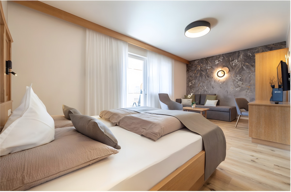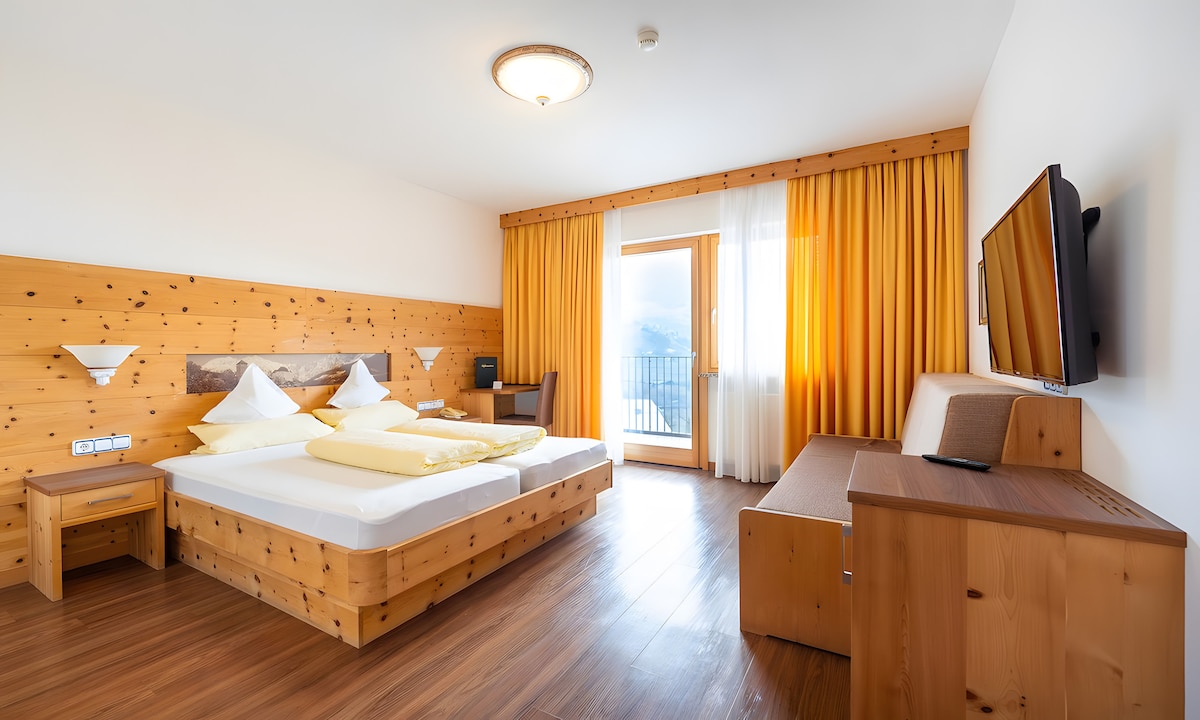 The Bb Villa Pattis 2P room in Sterzing offers 16 m² of space for up to 2 guests. It features 1 bedroom and 1 bathroom. The room is step-free accessible. Private amenities include a balcony with mountain view, a dedicated workspace, TV, and Wi-Fi. Our swimming pool and whirlpool are open only during the summer months, from June 10th to September 10th. Villa Pattis in Sterzing bietet Ihnen praktische Annehmlichkeiten wie Skiaufbewahrung und Selbst-Check-in für Ihre Anreise.