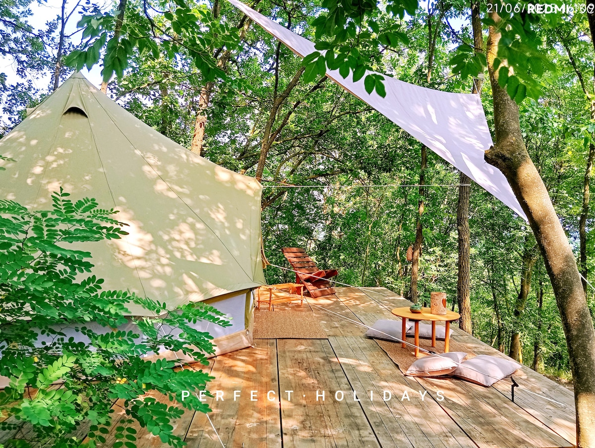 Nel cuore del monferrato e nel parco naturale del sacro monte di Crea, entrambi patrimonio dell'UNESCO, sarete circondati da vigne e dolci colline. La tenda di 16mq ha tutto il necessario per un soggiorno in totale relax, materasso in memory foam e zanzariera a 360 gradi, il bagno, servito di tutto è a uso esclusivo degli ospiti e si trova a pochi metri dal bosco, con un ingresso privato. Colazione in loco e Degustazione vini,salumi e formaggi presso agriturismo compresi nel soggiorno!