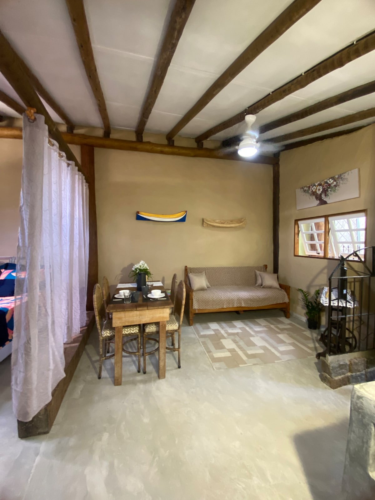 Welcome to the Loft da Sairinha, a loft in a quiet neighborhood nestled in the foothills of the Serra do Mar mountains, recently built and surrounded by the beautiful views of the Mata Atlântica. Situated in a quiet neighborhod just ten minutes from downtown Ubatuba and with easy access to over 80 beautiful beaches both north and south, the Loft da Sairinha is one of three small apartments on the same property with a shared gourmet kitchen, complete with churrascaria and pizza oven.