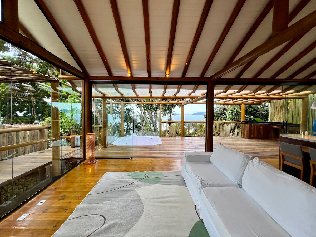 Charmosos estúdios self catering na linda praia do Prumirim. Entrada independente, pátio privado, cozinha totalmente equipada, cama queen size de alta qualidade, sala de estar confortável. Tudo projetado com qualidade, conforto e estilo. Grandes janelas panorâmicas que vão fazer você se sentir entre as copas das árvores! Este é um lugar mágico para quem procura uma fuga romântica à beira-mar conectando-se à natureza sem comprometer seu conforto. Tudo meticulosamente limpo, sanitizado e seguro!