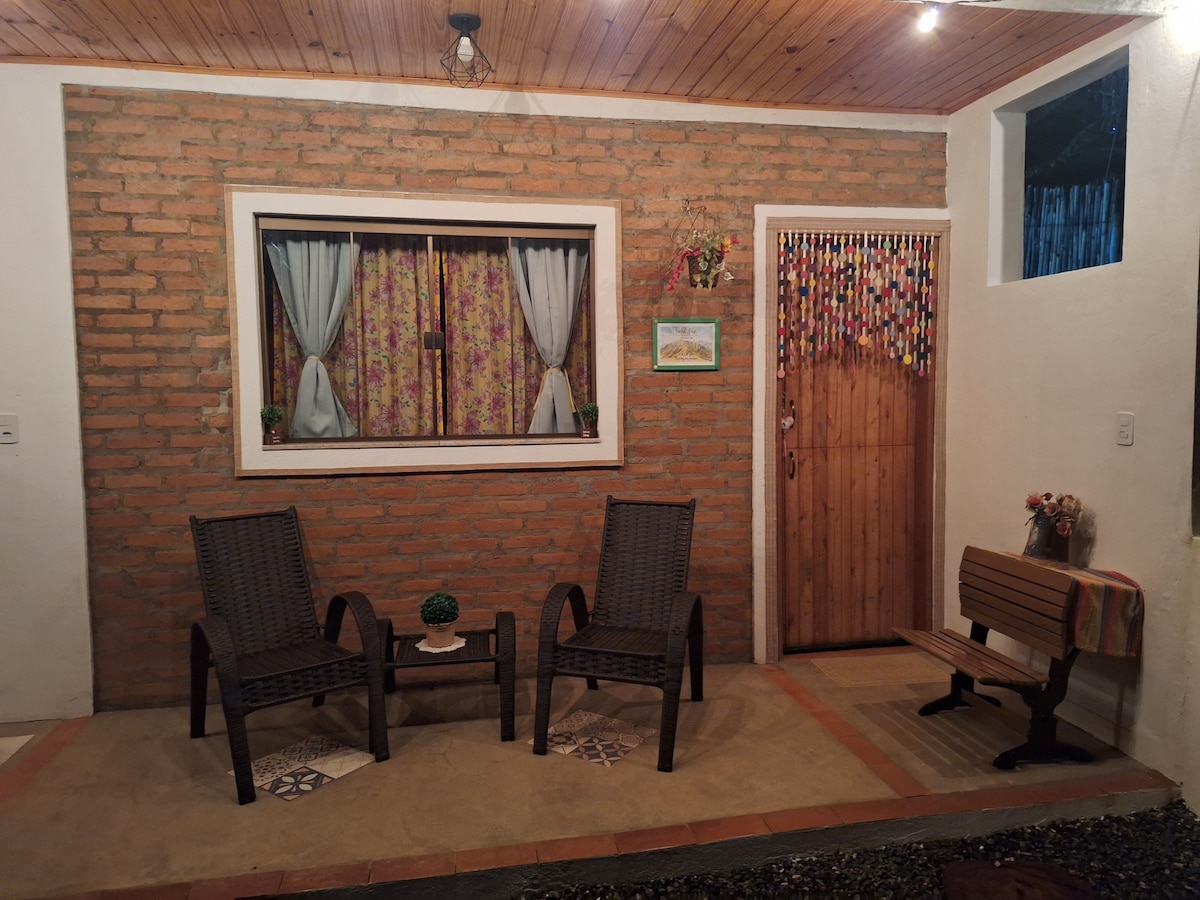 Casinha aconchegante aos pés da Serra Fina, ideal para quem busca descanso e contato com a natureza. Com vista deslumbrante para as montanhas, acomoda até 3 pessoas, possui cozinha privativa completa, banheiro privativo, Wi-Fi de ótima qualidade e varanda exclusiva com iluminação decorativa. Ambiente silencioso, familiar e muito bem cuidado, a poucos metros de cachoeira e trilhas. Perfeito para relaxar com conforto, simplicidade e tranquilidade.