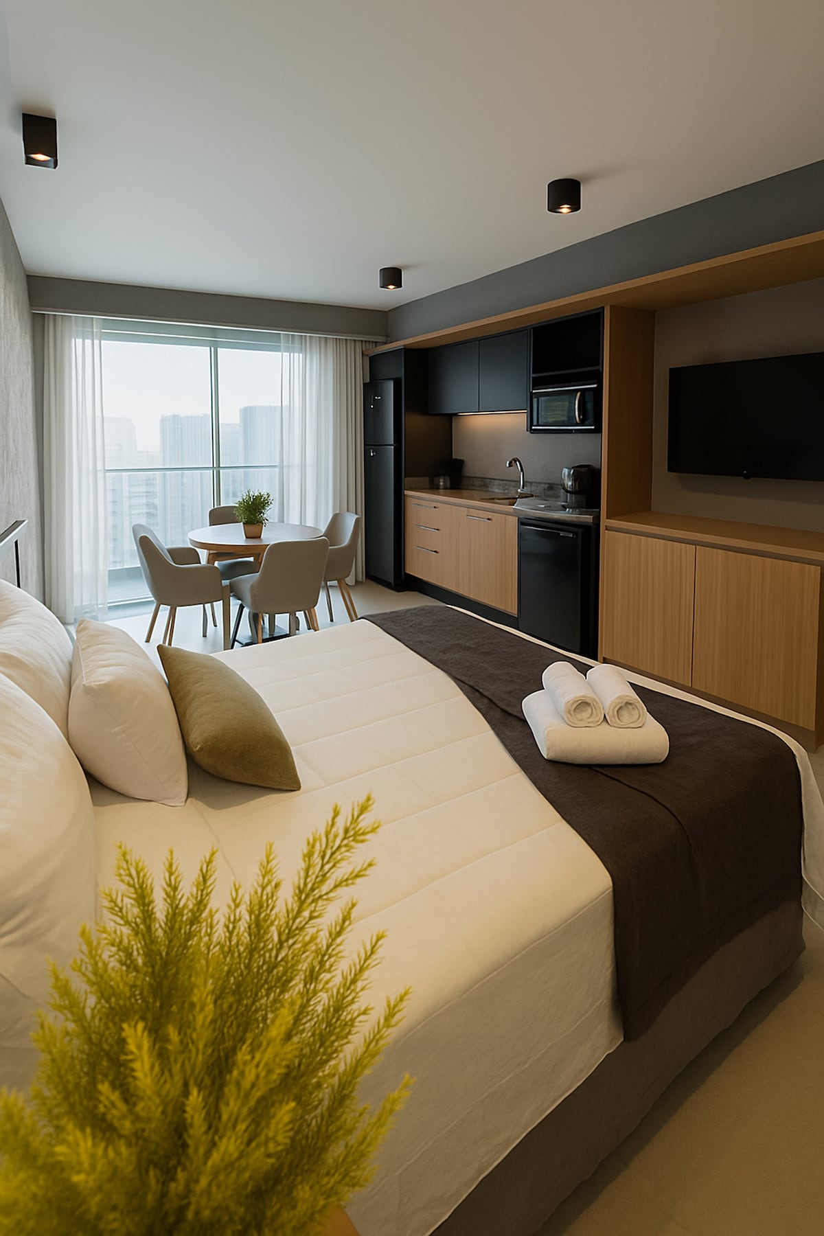 Studio com varanda e vista-mar + beach club grátis