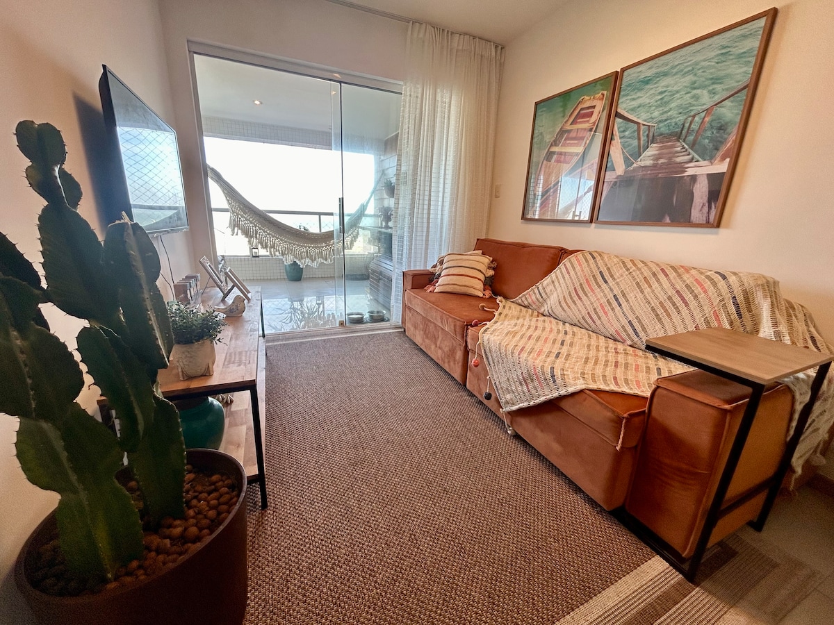 Perfect for beach lovers, with 300Mb fibre internet! This airy, laid-back beachfront apartment, on the second floor, has sensational ocean views and is just a few steps from Porto da Barra beach, one of the most beautiful and LIVELIEST beaches in Brazil! Located in a secure building in a neighborhood full of restaurants, bars, and local flavor, this is also the starting point for the Carnaval route. NOTE that we do charge separately the electricity bill for your stay (more details below).
