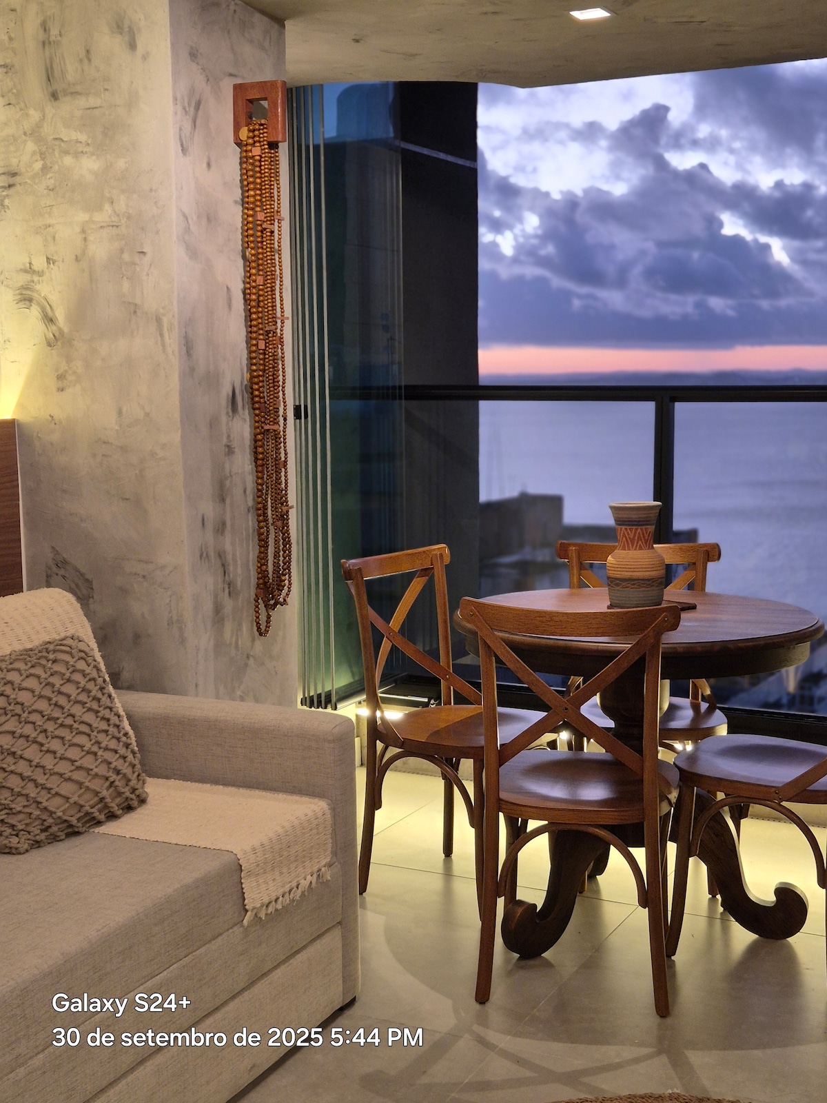 Loft moderno e espaçoso, com cozinha completa e ampla varanda, situado em condomínio tranquilo e seguro à beira-mar. Uma experiência incrível à frente da Bahia de Todos os Santos, onde é possível apreciar o nascer do sol com a cidade de Salvador ao fundo. Com uma praia calma e fácil acesso ao centro, onde encontram-se diversas opções de lazer, farmácias e bancos, este local se torna uma localização excepcional para férias ou para desfrutar de uma longa temporada trabalhando remotamente.