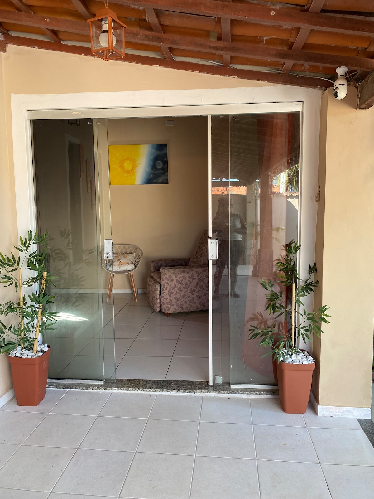 Apartamento completo com sala, quarto e cozinha num só ambiente Fica na parte térrea de uma casa localizada no andar superior. A área externa é compartilhada com os hóspedes da casa que, muitas vezes somos nós, os anfitriões. O quarto pode ser arrumado para casal ou 2 camas de solteiro. Não tem TV. Não aceitamos pet.