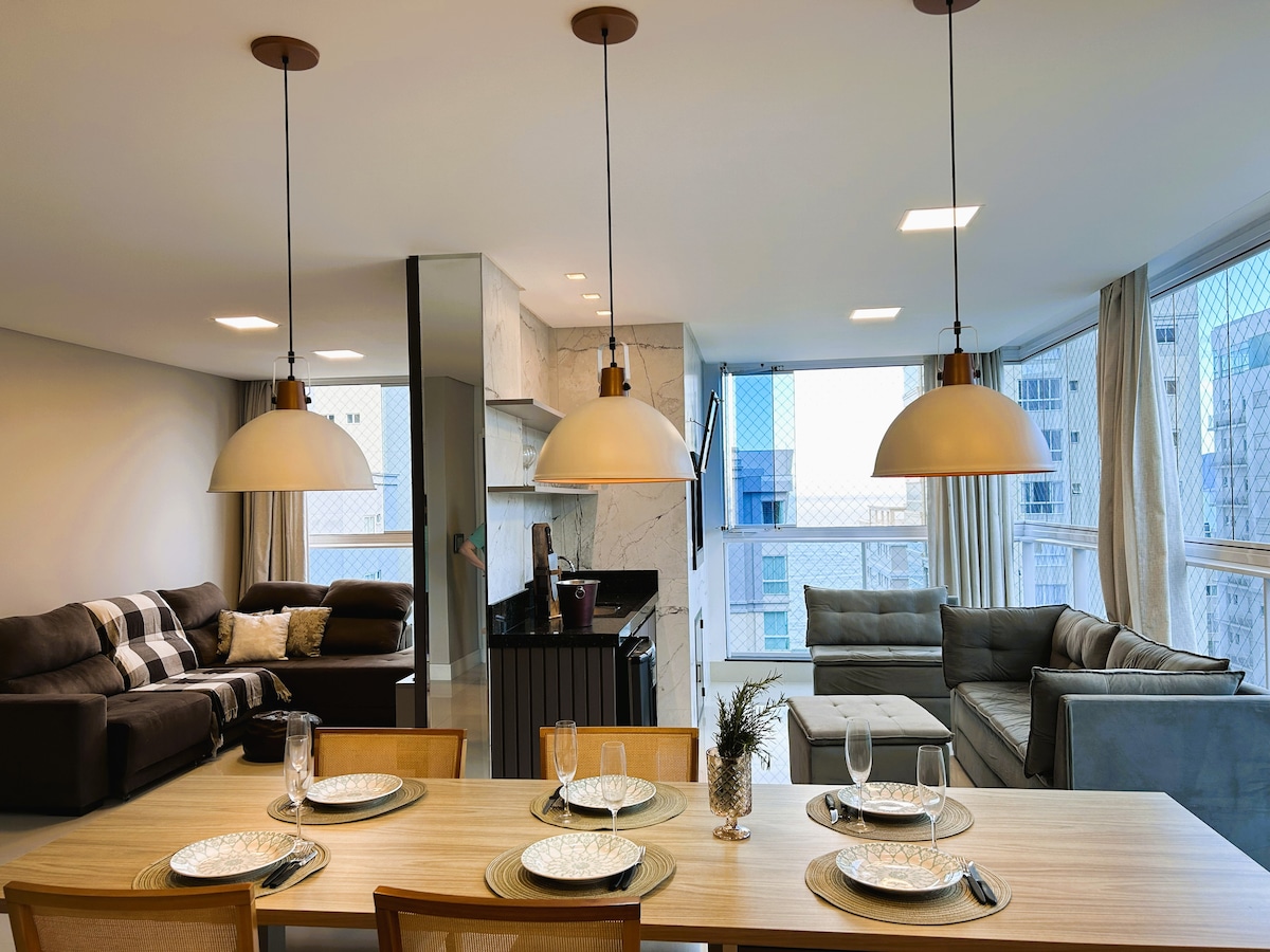 Excelente apartamento todo novo, lindo edifício de alto padrão, a poucos metros da praia, contamos com 2 suítes, lavabo, sofá cama, mesa de jantar taças, cafeteira expresso e utensílios domésticos em geral. Churrasqueira em sacada com vista lateral ao mar. Nas imediações tem pizzaria, padaria, farmácia, Havan, e supermercado entre outros .