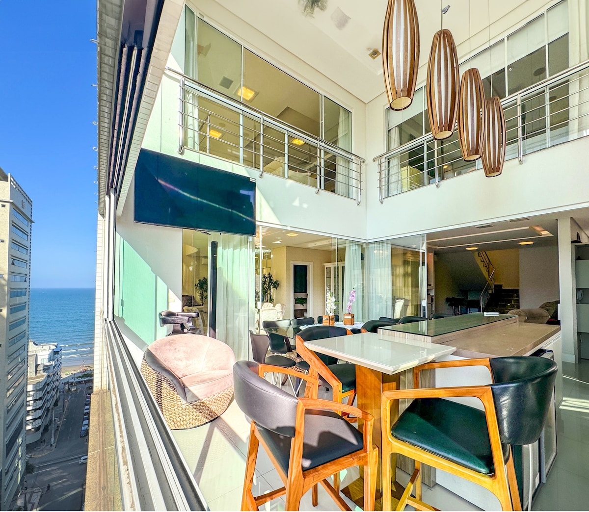 Viva uma experiência única nesta cobertura duplex exclusiva para quem valoriza conforto e espaço. Totalmente climatizada, oferece ambientes generosos e perfeitos para relaxar. Conta com jacuzzi e churrasqueira. Cozinha completa com cervejeira, adega e frigobar. Também 3 vagas de garagem. Localização excelente: a apenas 2 minutos da praia, com conveniência ao lado. Anfitriões com mais de 12 anos de experiência, garantindo uma estadia segura e bem cuidada. Amplitude, luxo, conforto e localização.