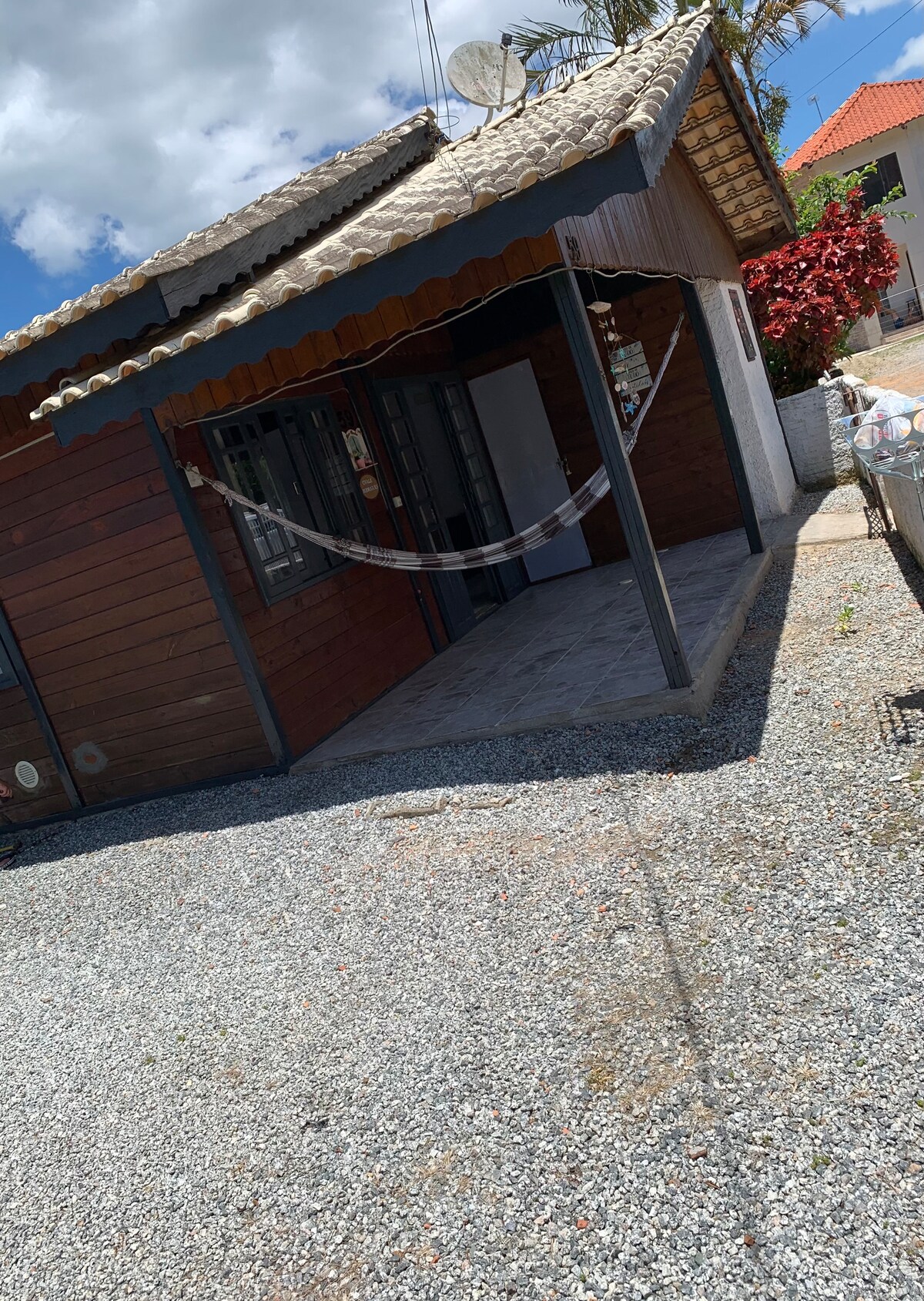 A menos de 10 min a pé da Praia Central, mercados, farmácias, padarias e da Praça da Paz. A casa possui um quarto com cama de casal, uma cama de solteiro, TV e ar condicionado. Na sala, uma confortável bicama, podendo acomodar mais duas pessoas. Por enquanto, há ar condicionado somente no quarto, e ventilador na sala. A cozinha é completa, a lavanderia com máquina de lavar e uma churrasqueira. Infelizmente não oferecemos vaga de garagem, porém em frente à casa há vagas disponíveis.