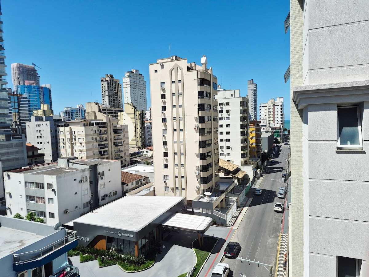 Apartamento novo, aconchegante, localizado no coração de Meia Praia, cerca de 100m do mar, próximo do Shopping, Burger King, panificadora, mercado, farmácia. Possui sacada com churrasqueira a carvão, sala de TV, sala de jantar, cozinha americana, banheiro social, 1 quarto e 1 suíte. Ambos os quartos possuem ares condicionados split. Imóvel dispõe ainda de um colchão de casal extra, que cabe no chão da suíte. O imóvel possui 1 vaga de garagem privativa, coberta, portão eletrônico e elevador