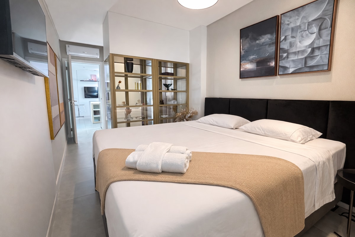 Enjoy our modern studio in the center of Itapema/SC! Fully air-conditioned and equipped with TV and Wi-Fi, the studio is located in the Manhattan Flats Building, which offers a rooftop pool, gym with a view, game room, bowling, sauna. For more leisure, reserve the BBQ grills, both with a fee. Just 280 meters from Central Beach and close to excellent restaurants. Book now and experience unforgettable moments on the coast!