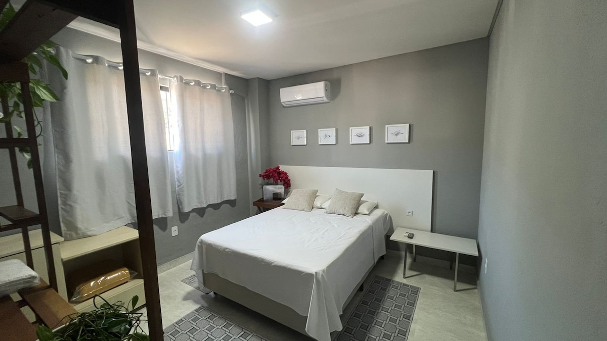 Encantador flat, equipado com todas as comodidades essenciais para uma estadia perfeita, oferecendo conforto excepcional e opções de lazer. O apartamento dispõe de ar-condicionado, 1 quarto, sala de estar, cozinha totalmente equipada com microondas e cafeteira e 1 banheiro com box amplo e secador de cabelo. Para sua comodidade, toalhas e roupa de cama são fornecidas. O aeroporto mais próximo é o Aeroporto de Navegantes/SC 44,6 km do Flat, padrão hotel no bairro Meia Praia, a 30 metros da praia 🏖️