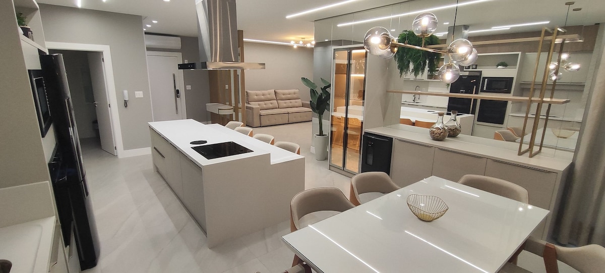 Belíssimo e luxuoso apartamento novo, com 03 suítes, salas de estar e jantar, com ar condicionado frio e quente. Varanda ampla com churrasqueira, cozinha e área de serviço bem equipadas, wi-fi e 02 vagas de garagem. Itapema - SC, no centro da Meia Praia e a 02 quadras do mar. Completa estrutura comercial até 02 quadras de distância: shopping, supermercados, bancos, farmácias, padarias, restaurantes, clínicas, salões de beleza e academias. Atendimento personalizado, com qualidade e segurança.