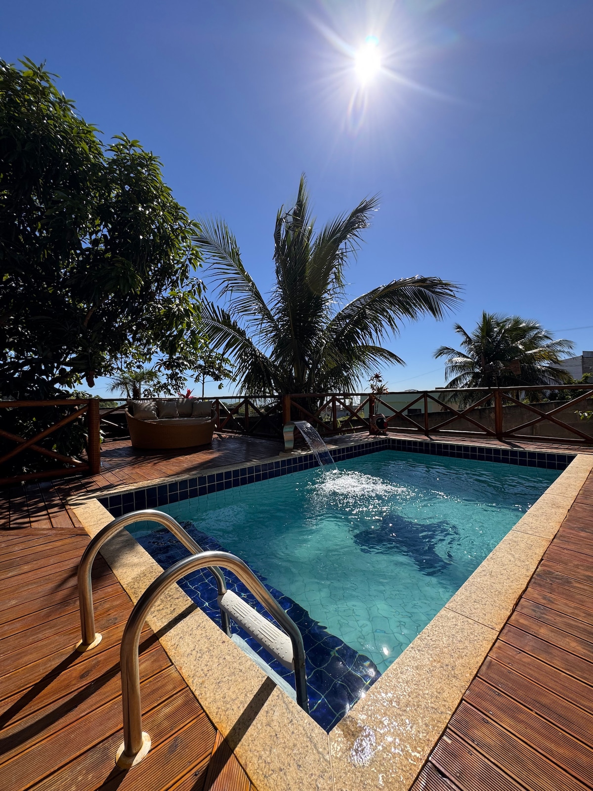 Relaxe com a família nesta acomodação tranquila, aconchegante e linda! A casa é de frente para praia, com um amplo quintal. Tem 1 piscina aquecida e uma área perfeita para fazer churrasco e passar o dia com a família/amigos. Casa ampla com 5 quartos, sendo 4 com suíte e vista para o mar, internet, utensílios, roupa de cama e banho e mobília completa para proporcionar mais comodidade aos hóspedes. Próximo de supermercados, padarias, farmácias, restaurantes, bares, podendo ir a esses locais a pé.