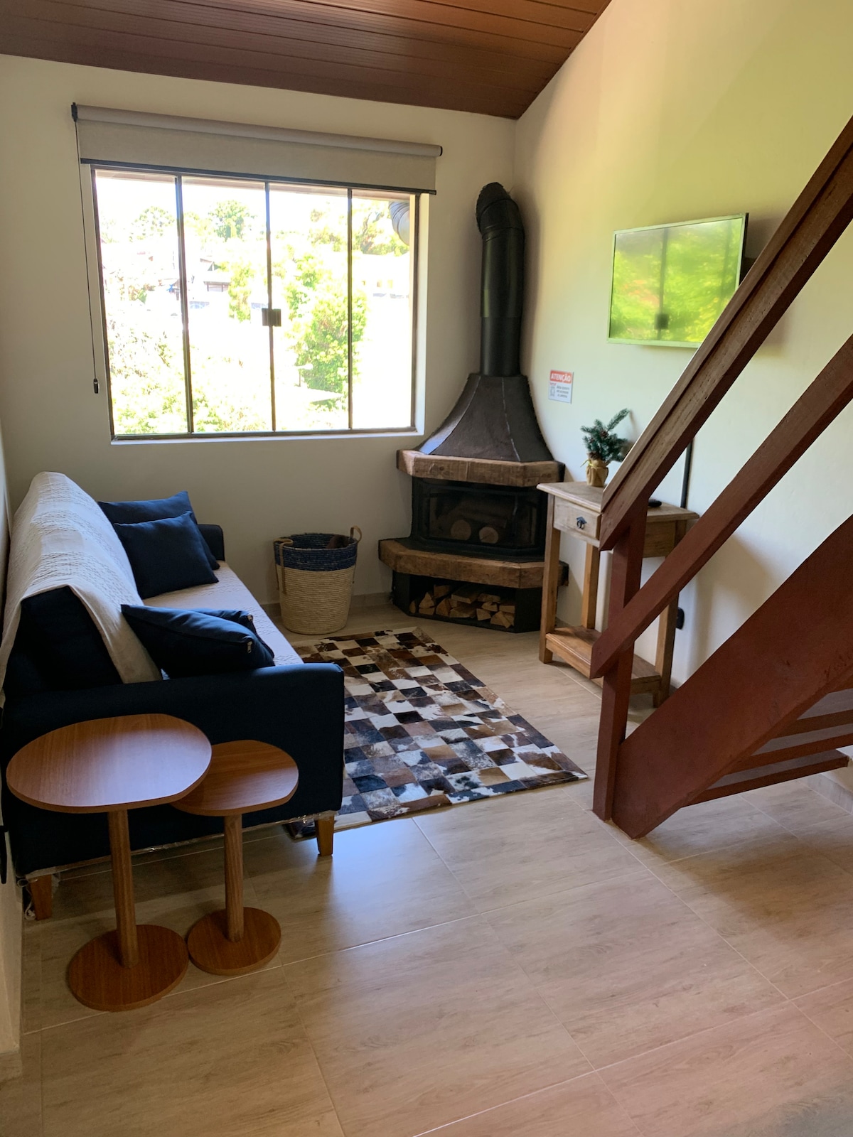 Apartamento para casal, localizado próximo ao centrinho, com varanda privativa e aconchegante para admirar o pôr do sol. Garagem, elevador e acesso totalmente asfaltado. *Lareira *Cama Queen com aquecimento *Aquecedor de toalhas *Roupa de cama e banho inclusas *Amenidades de banho *Geladeira *Microondas *Fogão de indução *Cafeteira Nespresso *Purificador de água *Wi FI *TV Full HD com NETFLIX e Globoplay. * Fazemos decorações românticas para surpreender seu amor (consulte)