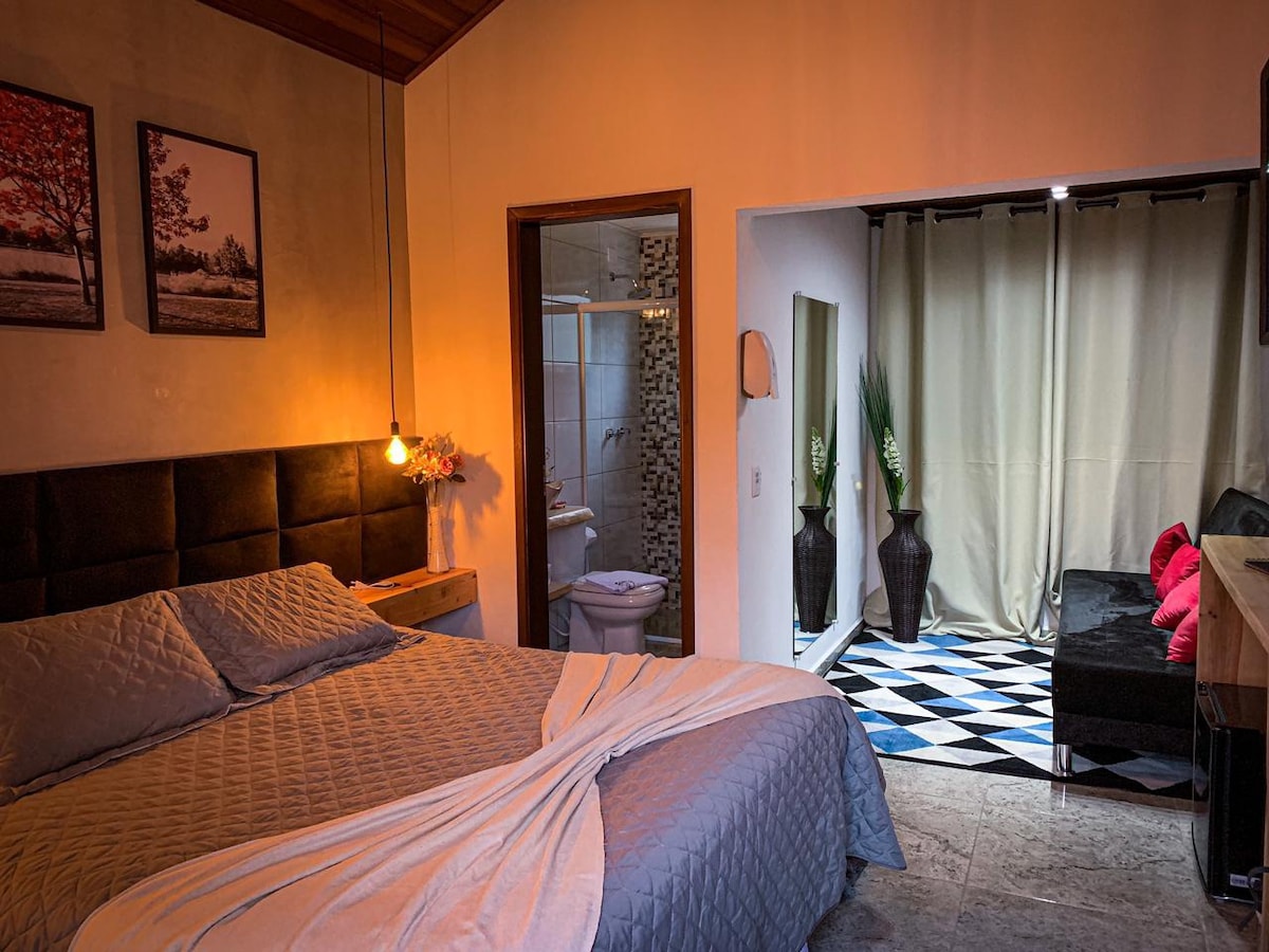 Apartamento recém montado, com localização privilegiada, dando acesso rápido a diversos pontos turísticos de Socorro-SP. O que você vai encontrar: - Suíte com cama de casal - Quarto com duas camas de solteiro que pode virar casal - Banheiro social - Smart TV com acesso Prime, Disney - Internet 400MB - Geladeira - Micro-ondas - Fogão - Maquina de lavar roupas - Adega com vinhos Obs. Trazer roupa de cama e banho, caso necessite, terá uma taxa extra de R$150 casal e R$ 50 solteiro