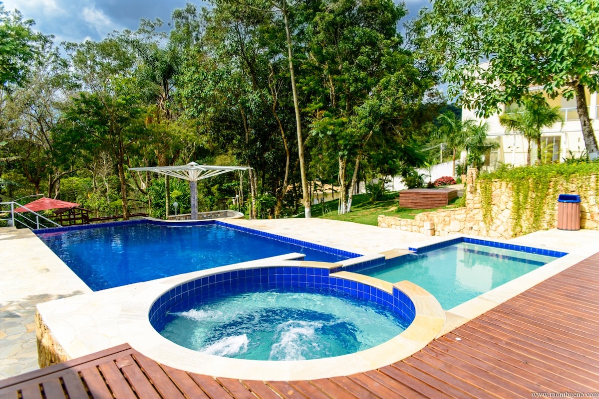 Nossa chácara é perfeita para descansar e curtir momentos especiais! São 2 quartos (um deles suíte ampla), sala espaçosa, cozinha equipada e área de lazer com churrasqueira, geladeira, ducha, banheiro e piscina. Fácil acesso de Barueri e região. Clima tranquilo, muito verde e vista charmosa 🌱. Ideal para reunir família e amigos em um ambiente acolhedor. Limpeza pode ser feita por você ou, se preferir, cuidamos disso por R$200 extras. Obs.: para dormir 10 pessoas, para passar o dia, 30 pessoas.