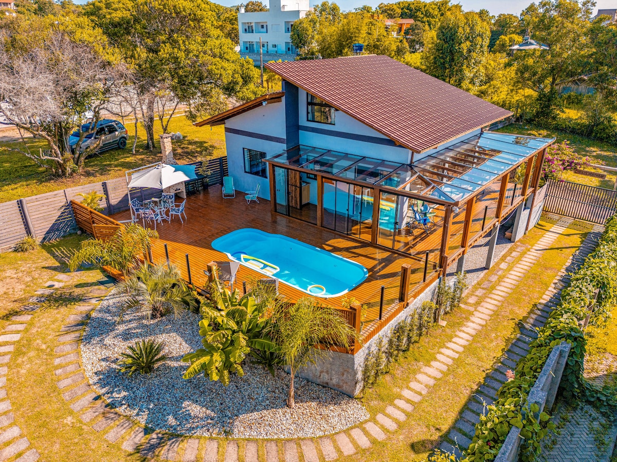 Nosso espaço é pensado para nossos hóspedes. Possuimos um espaço com 1500m², local seguro, casa completa e equipada, mesa de sinuca, piscina aquecida, área de jacuzzi de hidromassagem, acesso à lagoa privativo, prancha de standup paddle, caiaque etc. Nossa localização é privilegiada por belezas naturais, estamos localizados a cerca de 2km da Praia do Rosa, mas além desta linda praia, há outras lindas praias também na região, como Praia do Ouvidor, Praia da Barra de Ibiraquera, Praia do Luz, Etc…