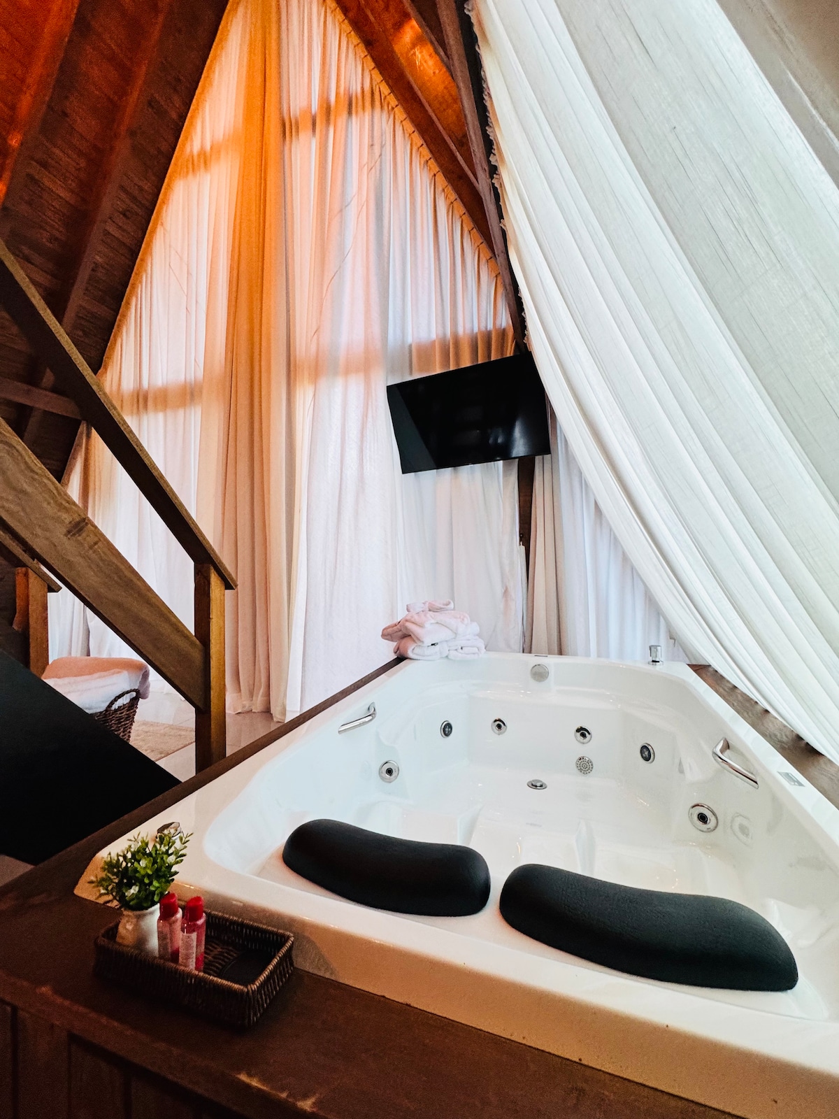 CABANA SWEET SAIL - mais do que estar na praia, nossa cabana foi criada para resgatar aquilo que a rotina muitas vezes nos faz esquecer. Com banheira que oferece vista para o jardim – perfeita para um banho relaxante – e o conforto de uma cama Queen com lençóis de alta qualidade, tudo convida você a descansar e aproveitar. O nosso jardim é um refúgio com um pôr do sol simplesmente inesquecível.