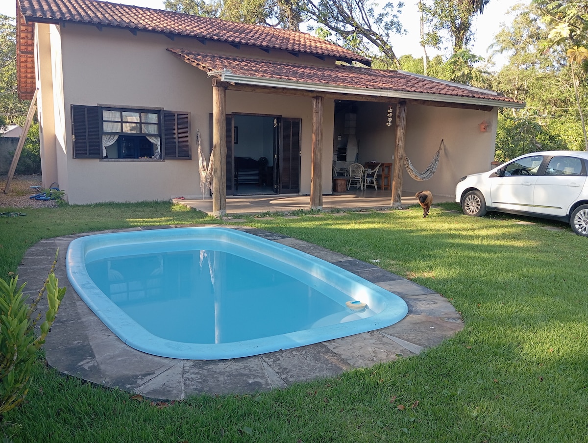 Aconchegante e cercada de natureza para até 8 hóspedes, possui: 3 quartos sendo 1 suíte ar condicionado, wi-fi 2 áreas de jantar (interna e externa), cozinha e varanda com churrasqueira Ideal para quem gosta de pescar! Pela rua dos fundo é possível acessar uma praia (distância de 50 metros) Estacionamento: vaga para 2 carros Algumas distâncias: 5km Forte Marechal Luz 12km Enseada 15km Prainha 20km Centro Histórico