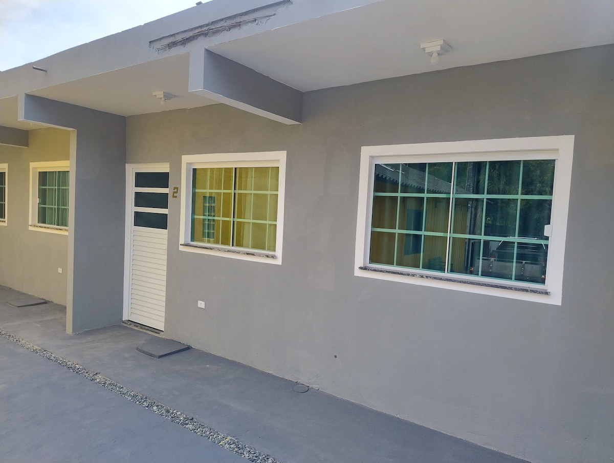 Relaxe com toda a família nesta acomodação tranquila. Quitinete de frente para o mar com dois quartos incluindo ventilador de teto em cada um, banheiro e sala conjugada com a cozinha, utensílios domésticos guardados nos armários, lado externo contém churrasqueira e tanque, quitinete compartilhada com outras, sendo pessoas passando ao local, mas sendo privativo dentro da quitinete! Abrindo o portão você estará com o pé na areia!