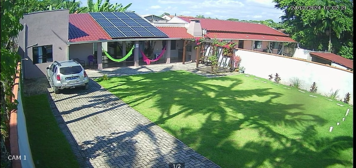 Relaxe com toda a família nesta acomodação tranquila e arejada. É uma casa simples mas aconchegante. Seu descanso com segurança, muros altos e portão eletrônico. Não aceitamos som alto, temos muito respeito pelos vizinhos Aceitamos no máximo 2 animais de pequeno porte