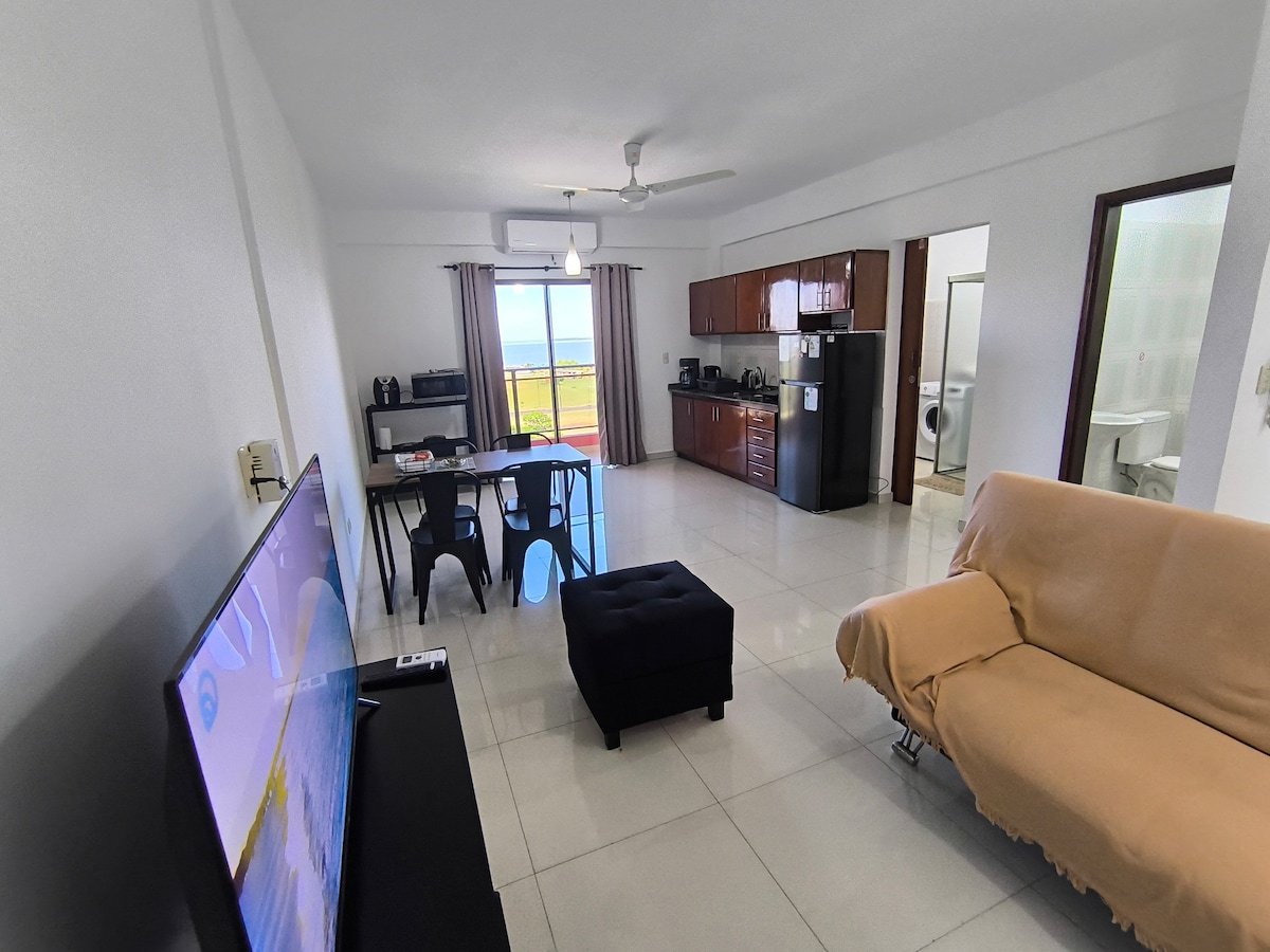 Apartamento con balcón vistas al río y excelente ubicación!📍. A pocos pasos de la Costanera, Playa San José🏖️, restaurantes🍴 y de Shopping Costanera 🛍️. Habitación principal con cama matrimonial 🛏️, sala con sofá cama(2.10 x 0.95 x 0.92) 🛋️, comedor, cocina integrada y baño moderno 🚿 Seguridad 24/7 🔒 y servicio de lavandería dentro del edificio para tu comodidad. Aires Splits en habitación y sala-comedor.