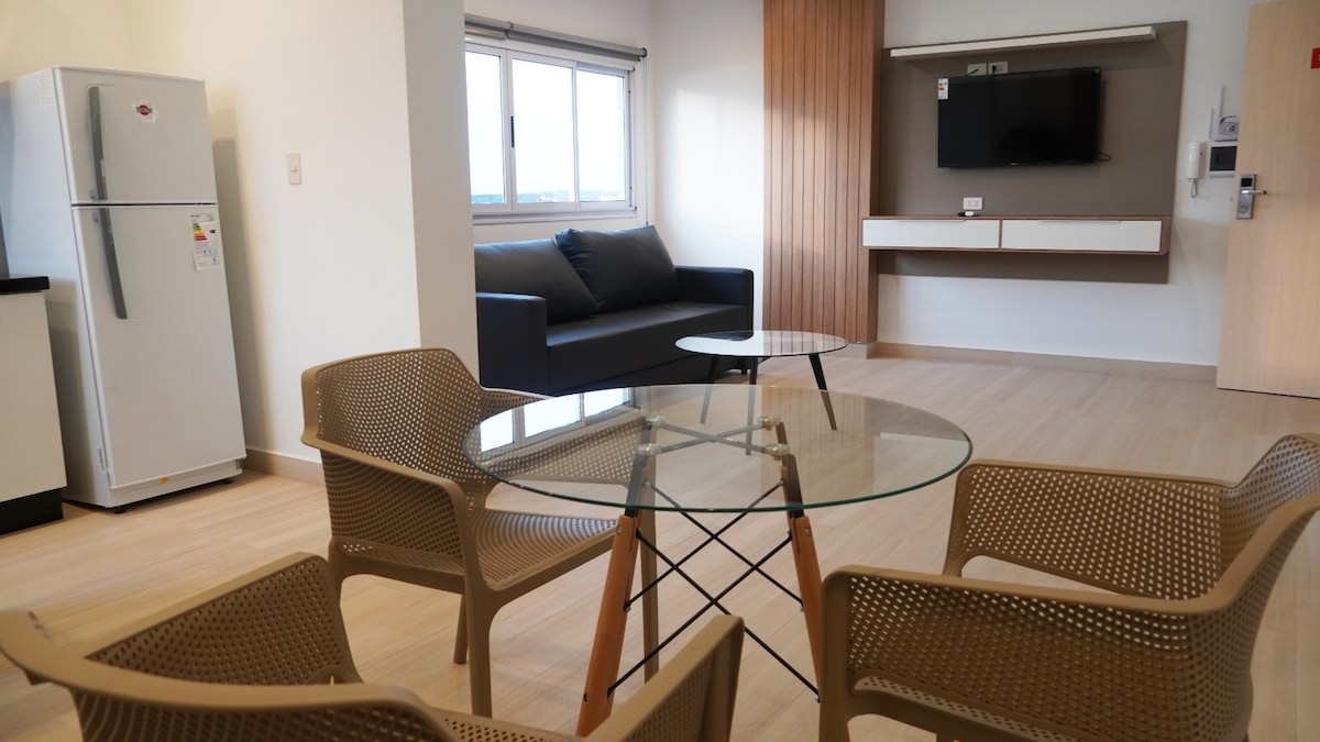 Este hermoso apartamento de una habitación ha sido equipado con todo lo que necesita para una estadía cómoda y placentera con estándares de hotel de alta calidad. La ubicación es inmejorable, a solo unos pasos de la costanera y del sambódromo, lo que permite disfrutar de las principales atracciones turísticas de Encarnación con facilidad.