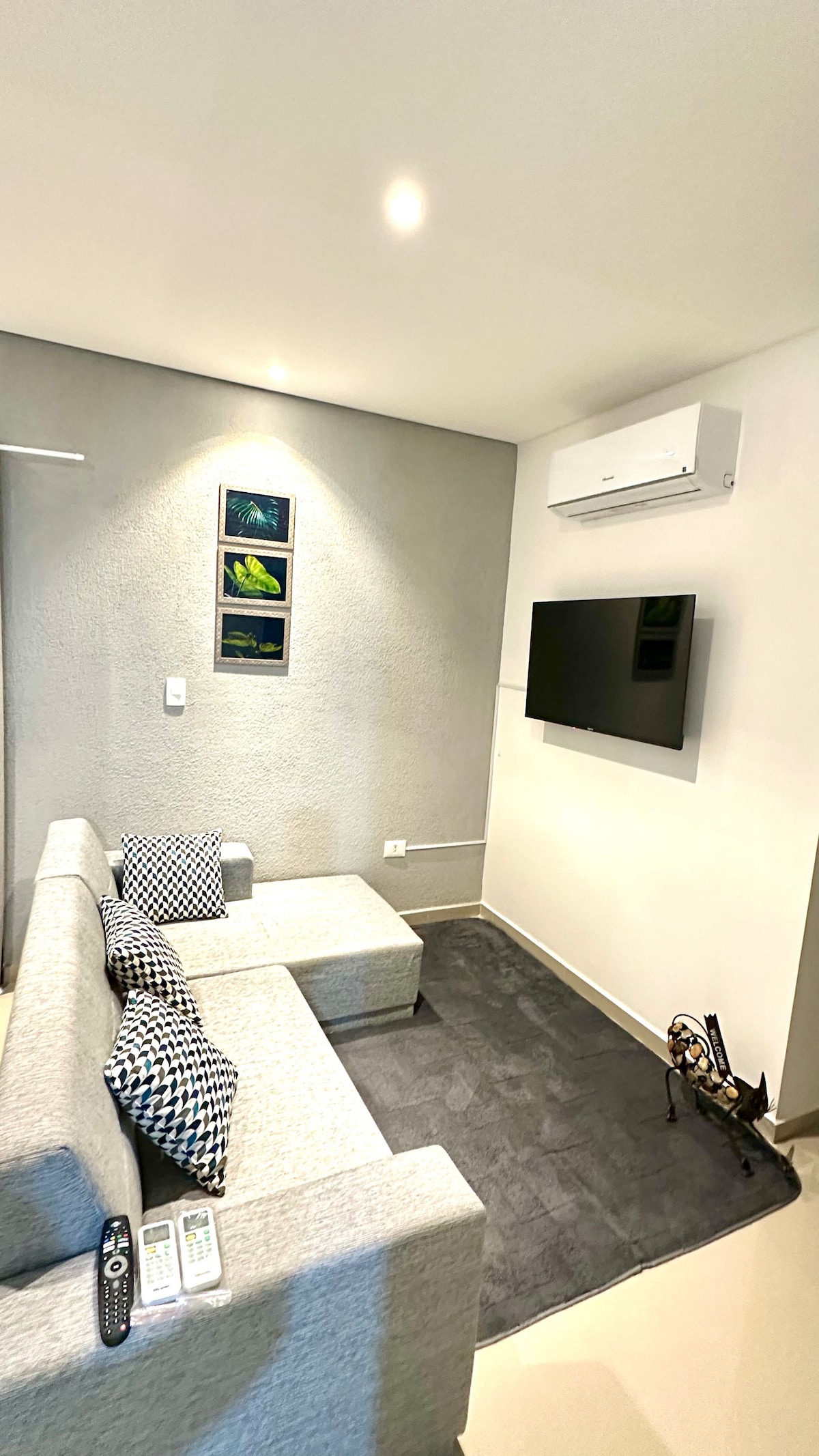 Apartamento con balcón vistas al río y excelente ubicación!📍. A pocos pasos de la Costanera, Playa San José🏖️, restaurantes🍴 y de Shopping Costanera 🛍️. Habitación principal con cama matrimonial 🛏️, sala con sofá cama(2.10 x 0.95 x 0.92) 🛋️, comedor, cocina integrada y baño moderno 🚿 Seguridad 24/7 🔒 y servicio de lavandería dentro del edificio para tu comodidad. Aires Splits en habitación y sala-comedor.