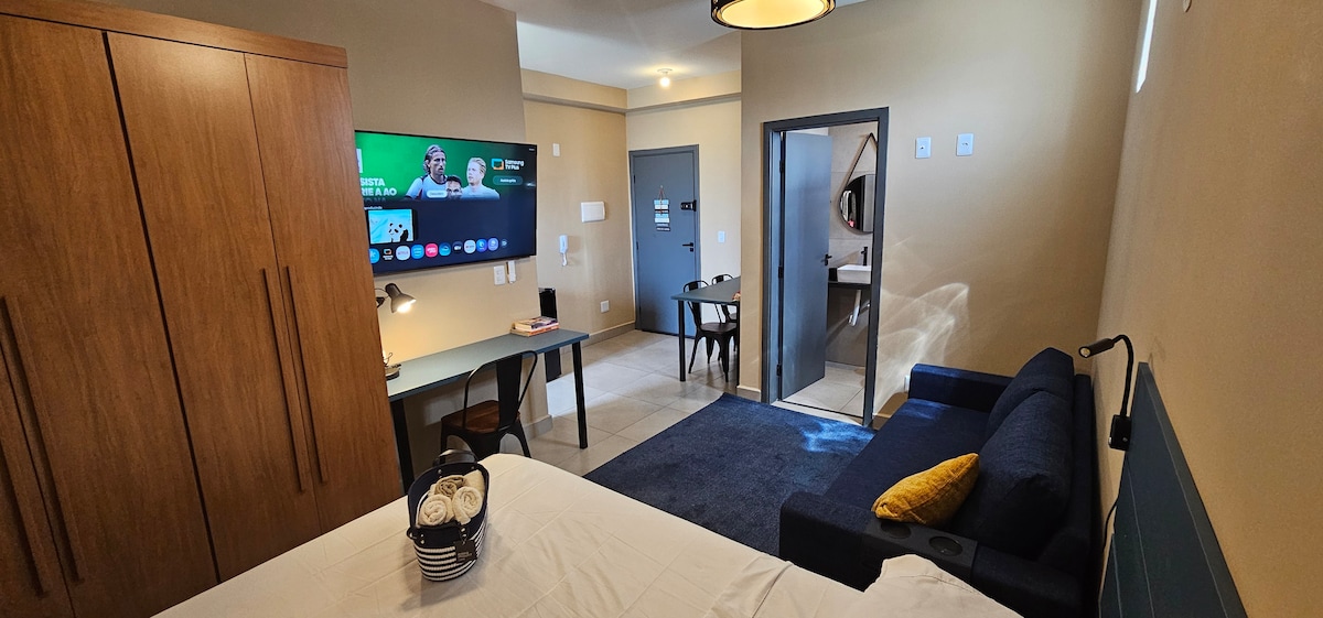 ✨Seja bem‑vindo ao Blue Lagoon Studios! LOCALIZAÇÃO PRIVILEGIADA 🏠 Studios novos e completos a 5 min do Suzano Shopping e 3 min do maior mercado da cidade. 🧘Ambiente acolhedor, seguro e pensado para seu bem-estar. 🛏️ Colchão de molas e ducha forte 📶 Wi-Fi veloz e TV Smart 🍳 Cozinha com cooktop, geladeira, micro-ondas e utensílios 💻 Espaço de trabalho ideal para home office 🔐 Check-in digital 24h e fechadura eletrônica Seu lar fora de casa – relaxe, trabalhe ou explore Suzano