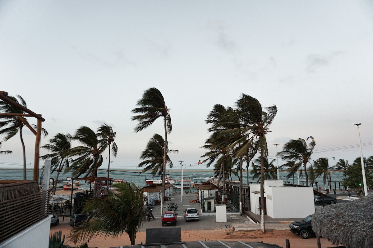 Soulkite House Brazil — andar superior com entrada independente, duas suítes confortáveis, sala ampla, cozinha equipada e vista incrível para o mar. Internet Starlink, roupas de cama, jardim com chuveiros externos e espaço para kitesurf. Ideal para famílias, grupos de amigos e amantes do vento. Viva o melhor da Ilha do Guajirú com charme, conforto e liberdade. O espaço IMPORTANTE: A Soulkite House Brazil possui dois andares com acessos independentes. Este anúncio refere-se ao andar superior.