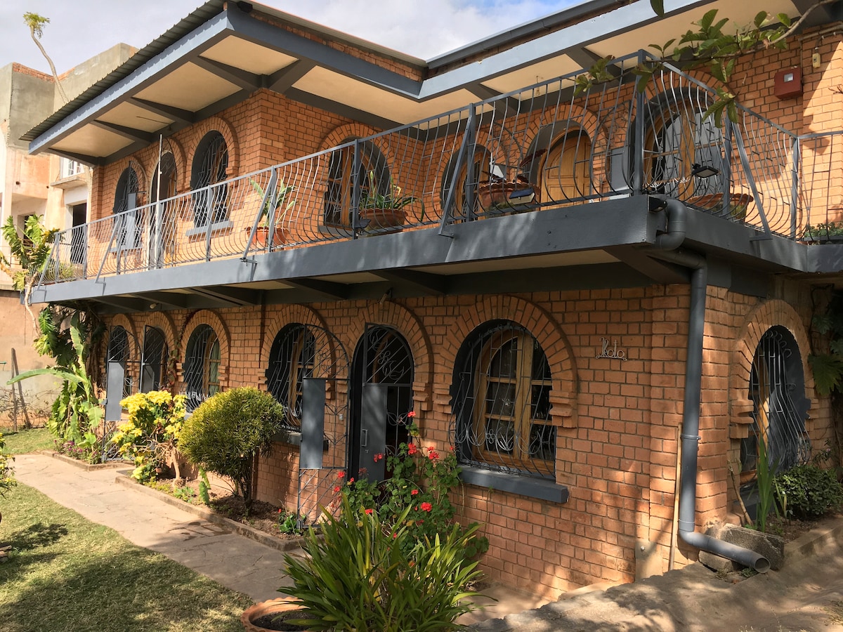 Relax with the whole family at this peaceful place to stay. This is a modern house with a fully fitted kitchen, dinner room, comfortable TV room with satellite channels. The two main bedrooms have double beds, and amazing views from the upstairs balcony! The 3rd room has two single beds suitable for the kids. The property has a dedicated person who handles security and access, and does some cleaning. This is the perfect place in the suburbs surrounded by real Malagasy people! Truly exceptional!