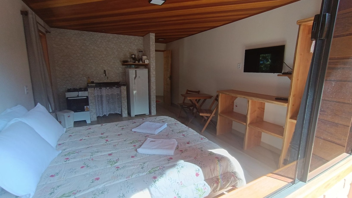 Aproveite seu descanso neste apartamento completo, com quarto aconchegante, escritório privativo e cozinha totalmente equipada. Localizado próximo a Penedo, você terá fácil acesso às belezas naturais, restaurantes e passeios da região. À noite, desfrute da vida noturna animada, com diversos bares e opções de lazer a poucos passos. Ideal para casais em busca de charme, viajantes a trabalho ou quem deseja explorar a Serra da Mantiqueira com conforto e praticidade.