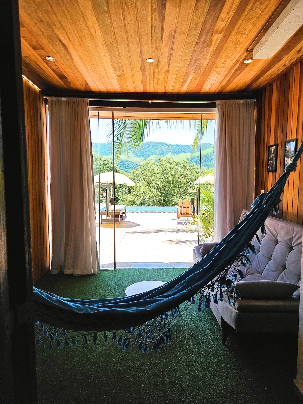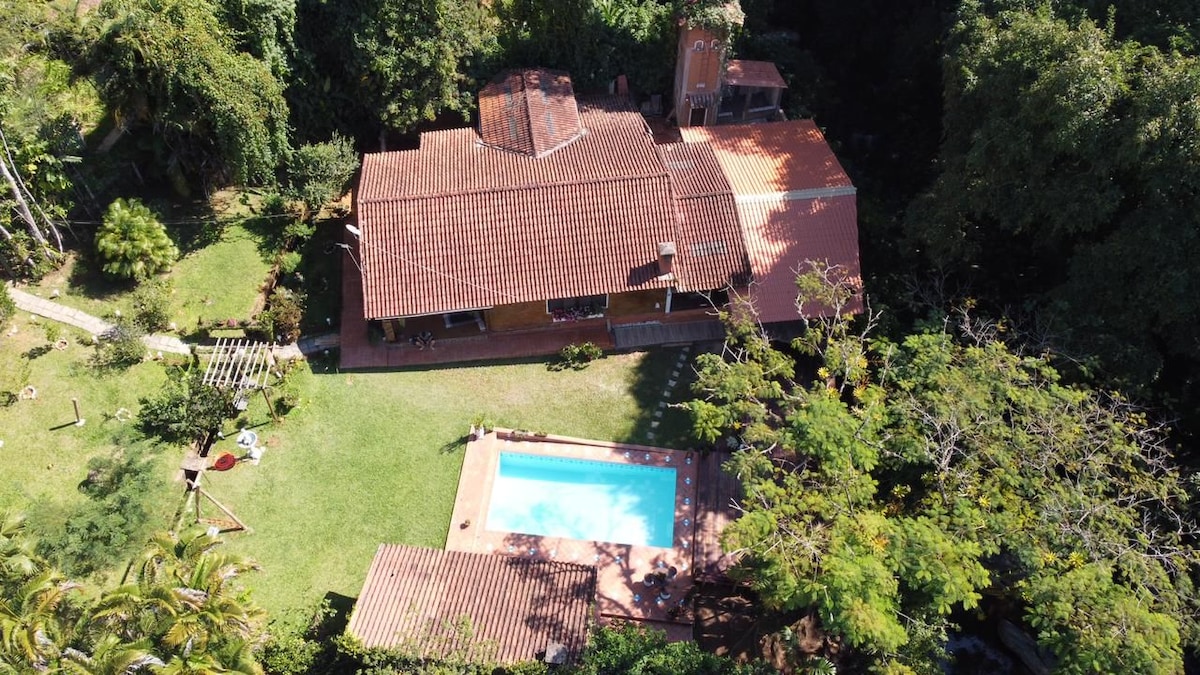 The environmental protection area of Serrinha do Alambari is rich in wildlife and plentiful in hikes and waterfalls. It's a 20 minute car journey from the town of Penedo and well located for a visit to Itatiaia National Park. The house has private access to the river and a waterfall within the property. Inside there are 4 bedrooms which open into the garden; 4 ensuite bathrooms; a fully equipped kitchen; a living room with fireplace and a mezzanine; an outdoor balcony with hammock and a barbecue