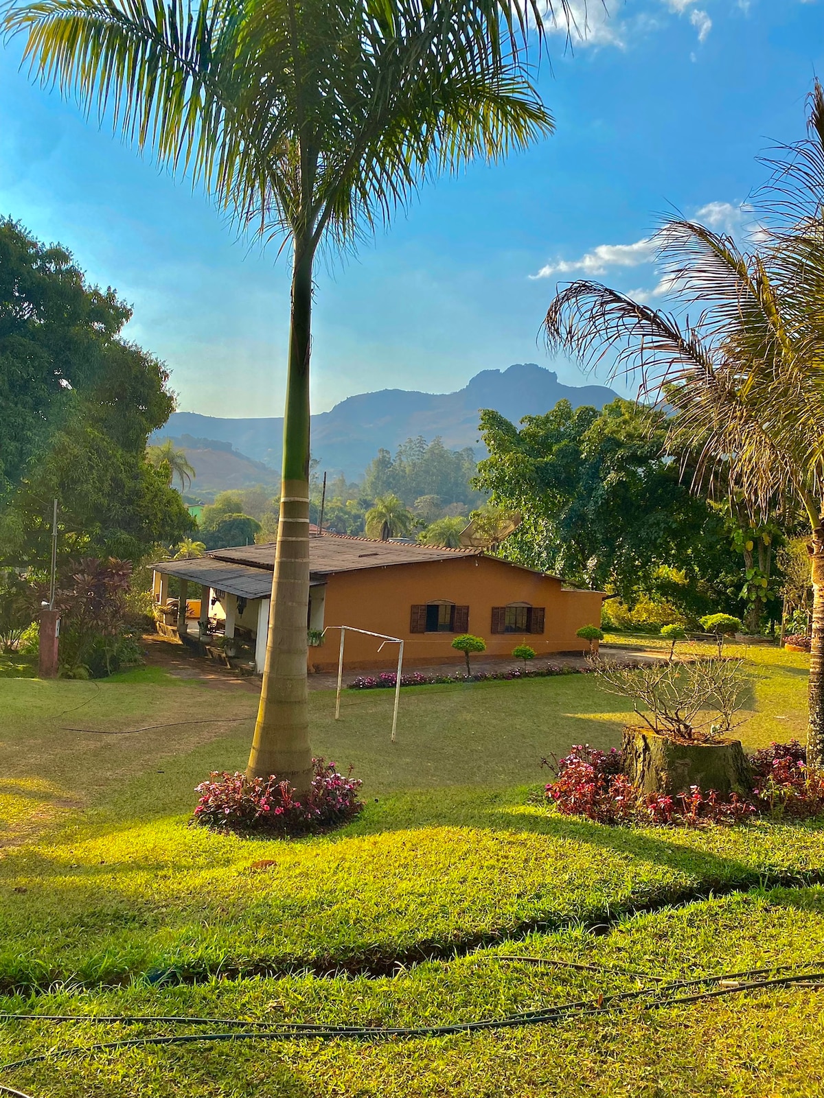 Sítio maravilhoso e tranquilo, próximo a BH, excelente vista e lindos jardins, com 09 quartos, sinuca, piscinas adulto 50000l com aquecedor solar e iluminada, piscina infantil, sauna (gás por conta do hóspede) , lagoa para pesca, freezer, churrasqueira, TVs, wi-fi liberado, balanços e rede para descanso, espaço cozinha com Airfryer, forno, microondas, misteira, fogão industrial, todos os utensílios, parquinho, tudo muito limpo e organizado, acesso rápido e fácil pela BR381.