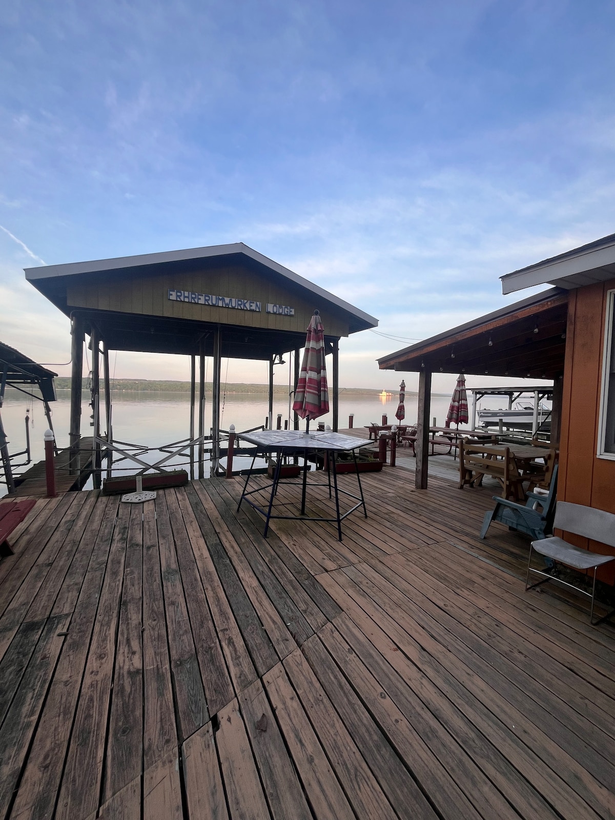 *The host has covered 100% of the guest Airbnb fees on this 90 ft of private lake front property* Have dinner on the screened in porch while watching the sunset. Roast marshmallows by the fire pit. Jump off the dock and swim in fresh water or float alongside on the kayaks provided. Take a wine tour by boat. Hike trails and see the waterfalls at our local state parks. Rent a boat from the marina next door. For couples, families, friends, and water enthusiasts, this has it all!