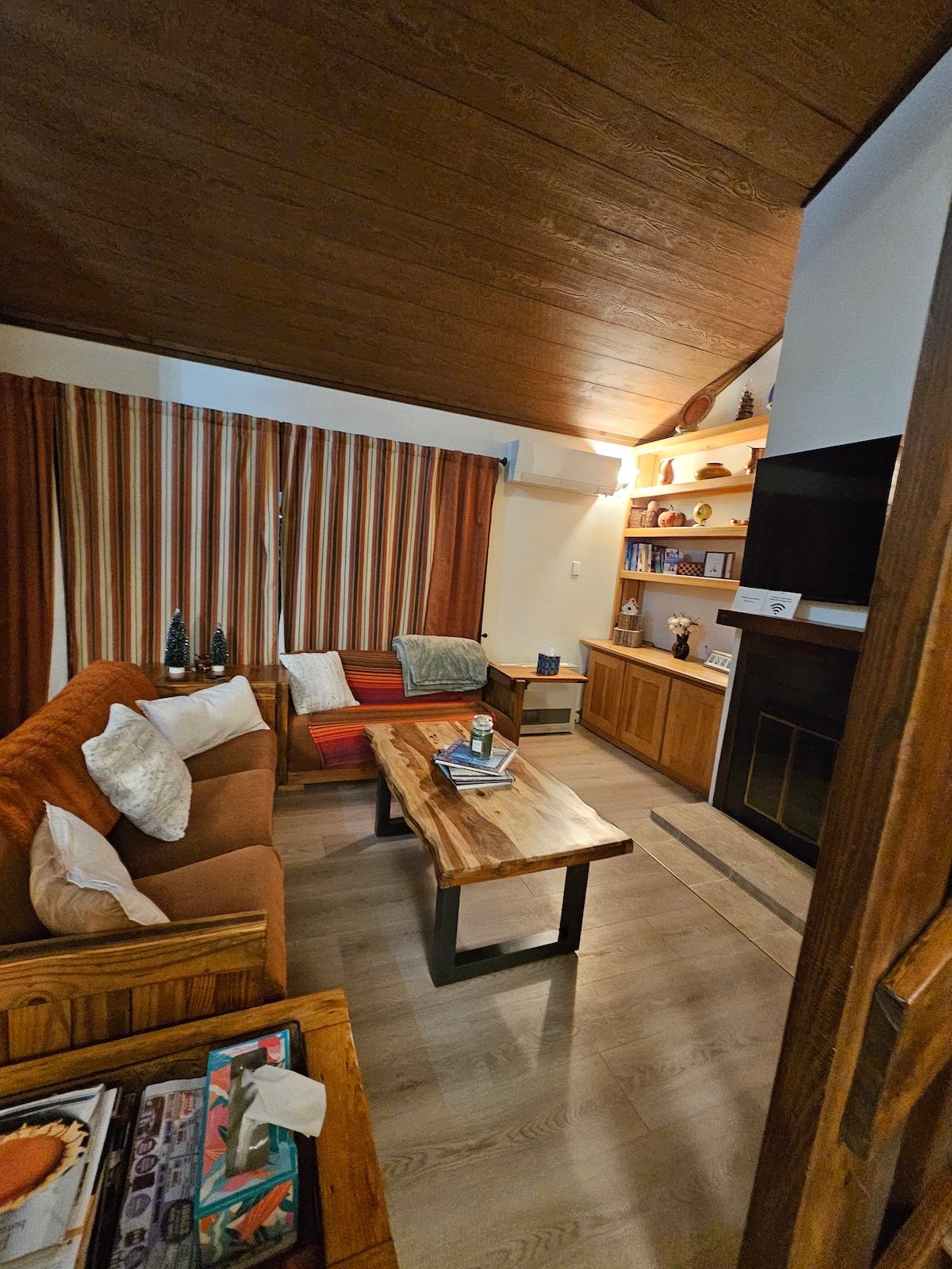 Relax with the whole family at this cozy condo while enjoying spectacular views of the mountain! Two decks allow you to spend time outdoors with a gas fire pit for nighttime entertainment. There are 2 bedrooms downstairs and a loft space accessible via ladder with 3 single beds upstairs that makes a perfect hangout for kids! The condo is a short walk to the main chair lift or you can hop on the shuttle which come by every 10-15 minutes.