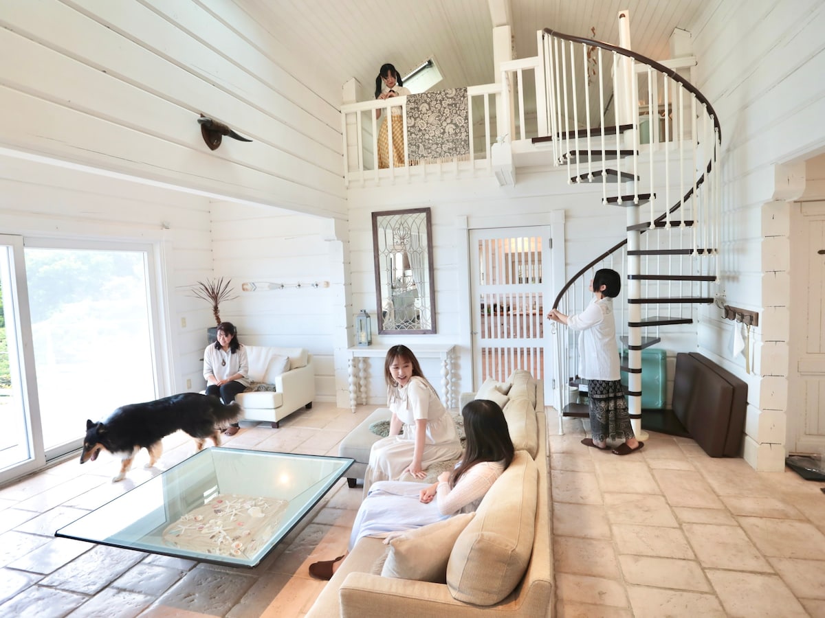 ~An exotic space reminiscent of a villa in the South of France~ The living room is a spacious, open space measuring approximately 130 square meters. It can comfortably accommodate up to 10 people. [Great Amenities] - Two massage chairs - Jacuzzi bath (with TV) - TV in each room - A space for family gatherings around the kitchen [Floor heating and built-in air conditioning] Comfortable air conditioning, even in winter. You'll enjoy warm feet even barefoot.
