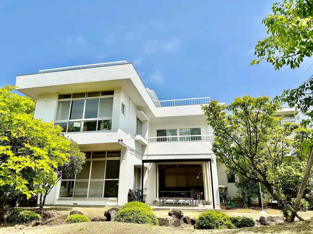 Beautiful 3BDRM holiday villa within Fuji-Hakone-Izu National Park. Comes with a large private hot spring bath, panoramic sea view, projector & garden. Morine provides year-round comfort for relaxation & an ideal base for remote work/holiday. Renovated combining modern Japanese taste with Western comfort. Each bedroom is generously sized & the spacious open-plan kitchen/dining/living area is ideal for getting together. Guests may be greeted by the beautiful blooms of a weeping cherry in spring.
