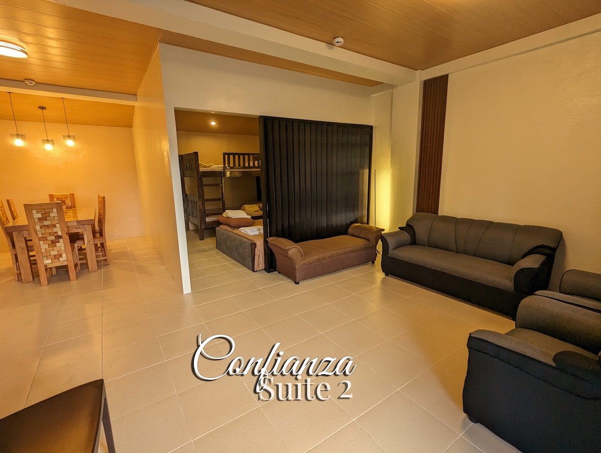 Before booking, PLEASE KINDLY READ our details. 😊 Why you should book now. 👉 Family-friendly 👉 Cozy & modern 2 bedrooms with convertible living room 👉 1 Full Bathroom 👉 HI-SPEED WIFI 👉 Two 4K TVs: 50” (living room) & 43” (bedroom) w/ NETFLIX & Disney+ 👉 Full kitchen 👉 Balcony w/ STUNNING CITY & MOUNTAIN VIEW 👉 Near City center 👉 2-3 min. to John Hay & Victory Liner Bus 👉 Impeccably clean guesthouse! 👉 PARKING FOR 1 CAR/VAN ONLY N.B.: Strictly maximum of 6-8 pax