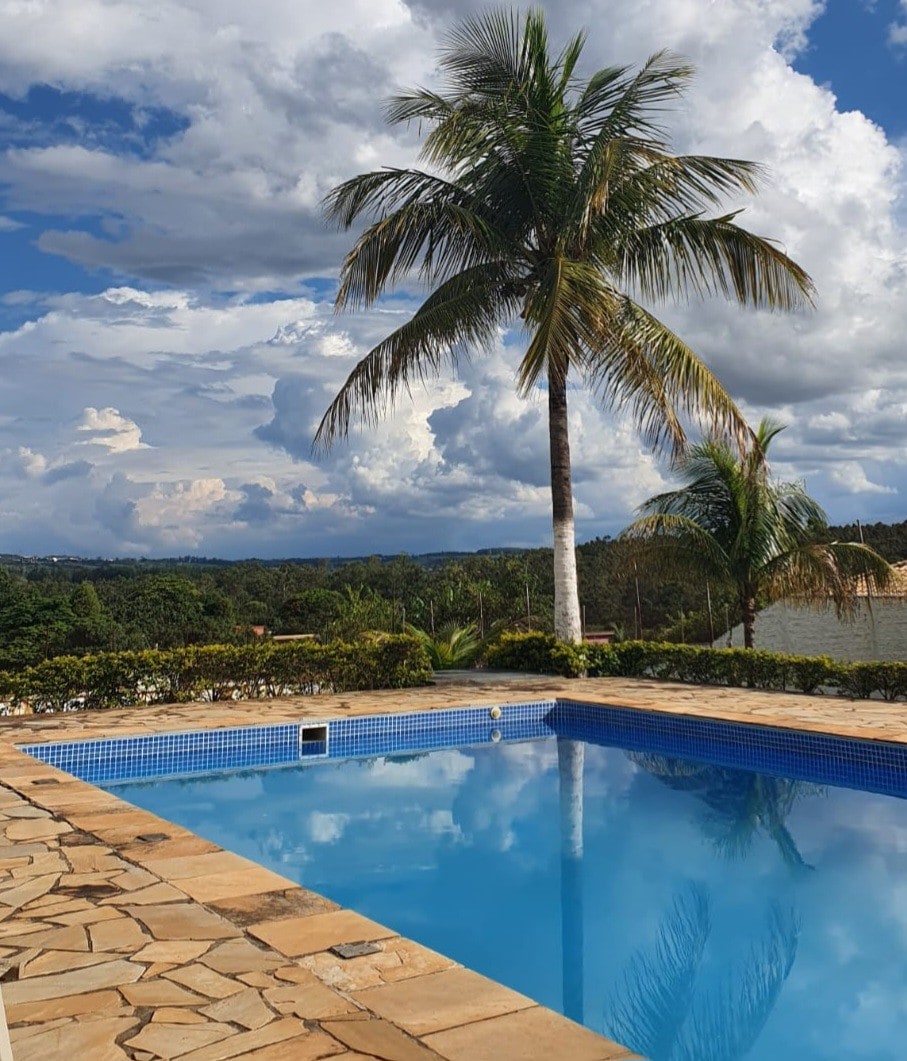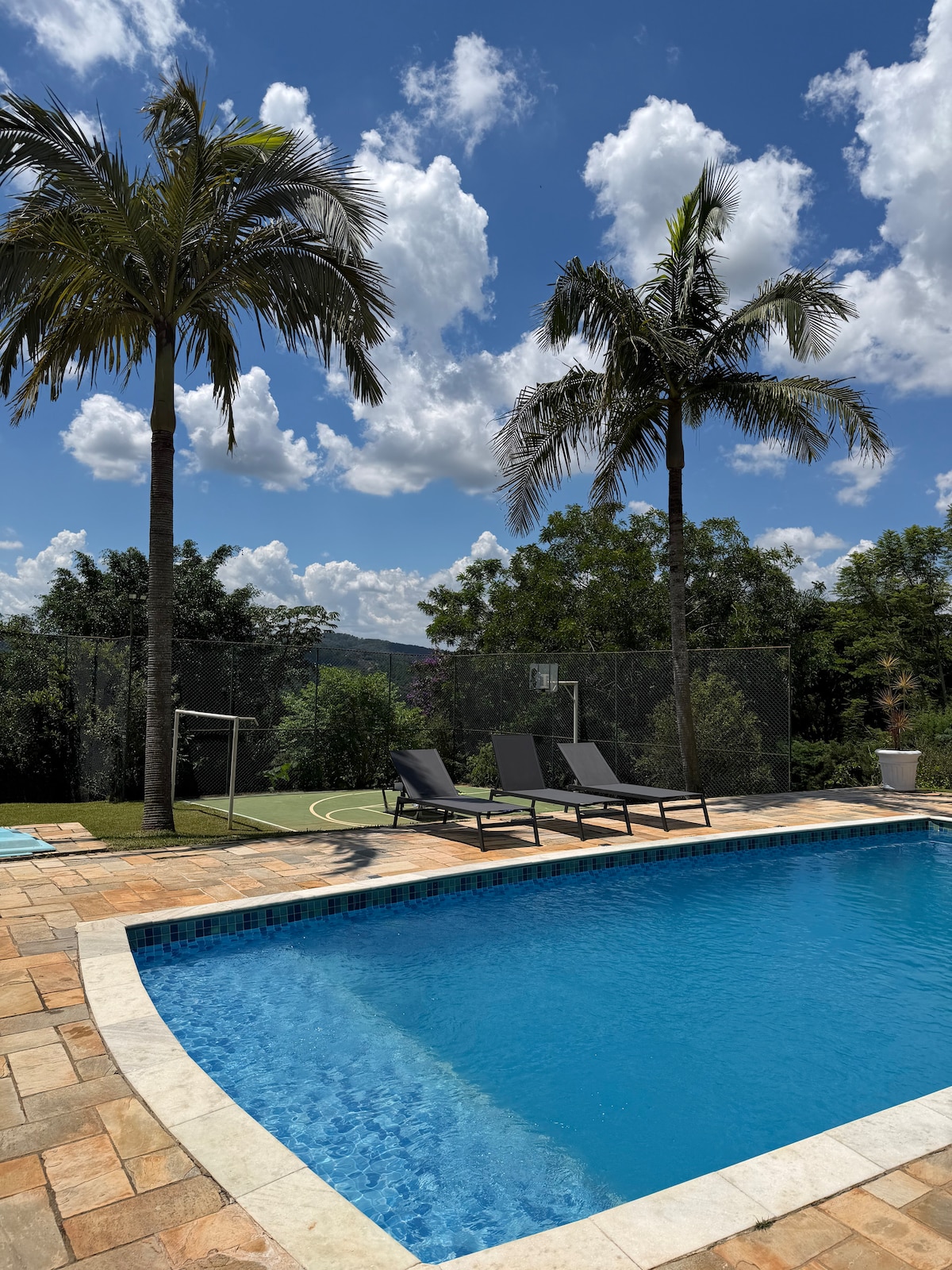 Chácara completa dentro do condomínio Porta do Sol com segurança 24 hrs, uma casa ampla e com uma vista espetacular, piscina , quadra de tênis, quadra de beach tênis, campinho de futebol ,academia , lareira externa ,salão de jogos, churrasqueira espaçosa com cozinha equipada, balanço infinito, deck de madeira com mesa e jogo de sofá, pergolado com espreguiçadeira dupla. Tudo isso dentro da chácara ,sendo área particular . Área de lazer completa privativa . Há 5 min do outlet Catarina.
