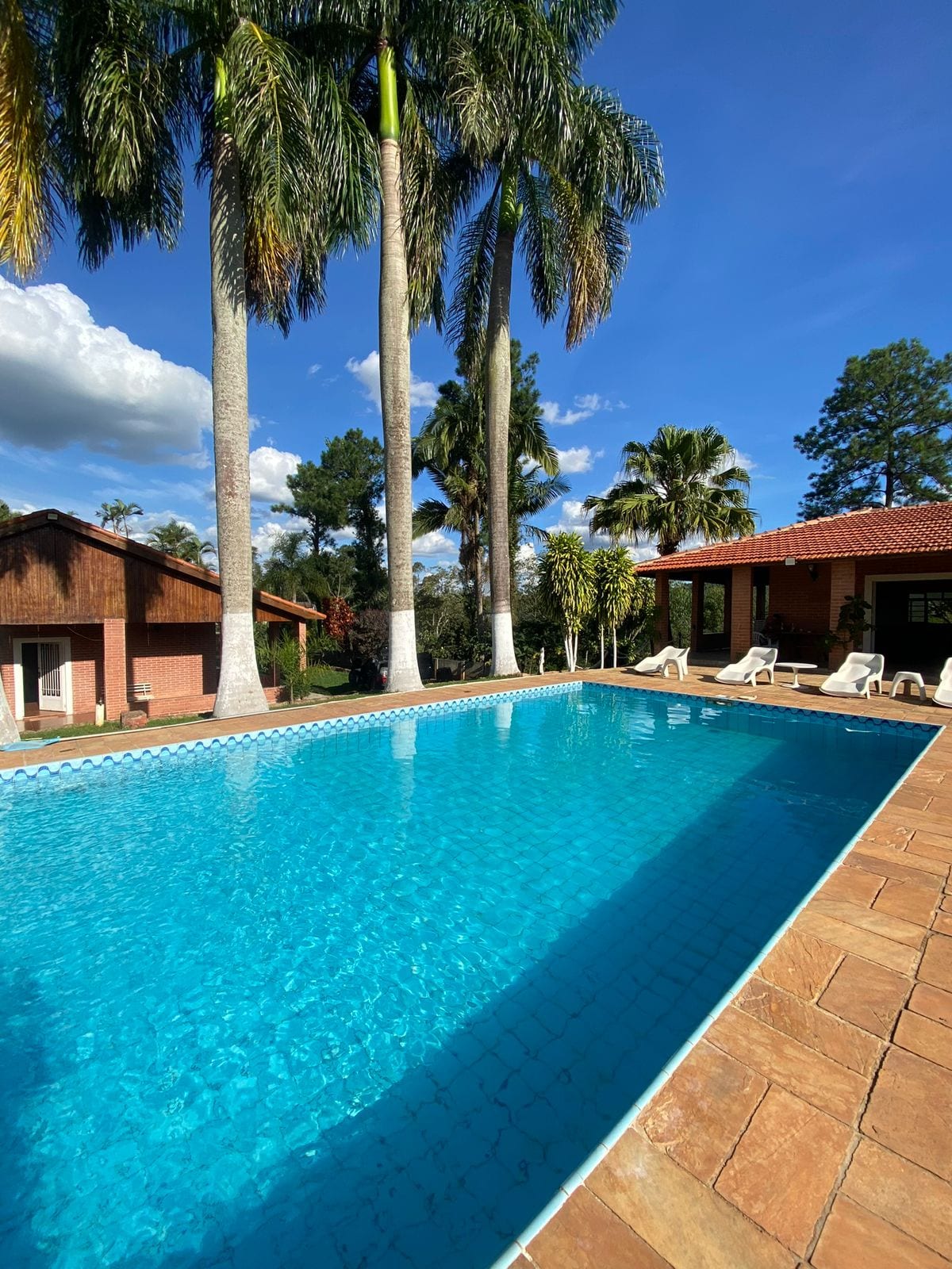 Casa charmosa, aconchegante, com privacidade, em condomínio fechado no campo, seguro, tranquilo, aceita pets, 64 km de SP - Wi-Fi, 1.600 m² de área com amplo gramado, piscina particular com 1,3m de profundidade e rede de proteção. Sala de estar, jantar, lareira, cozinha americana com despensa, 4 suítes e lavabo. Varanda com churrasqueira, forno de pizza, redes. Espaço para vários carros. Segurança Souza Lima, bombeiro e pronto atendimento. Muito sol de dia e friozinho à noite. Voltagem: 110V