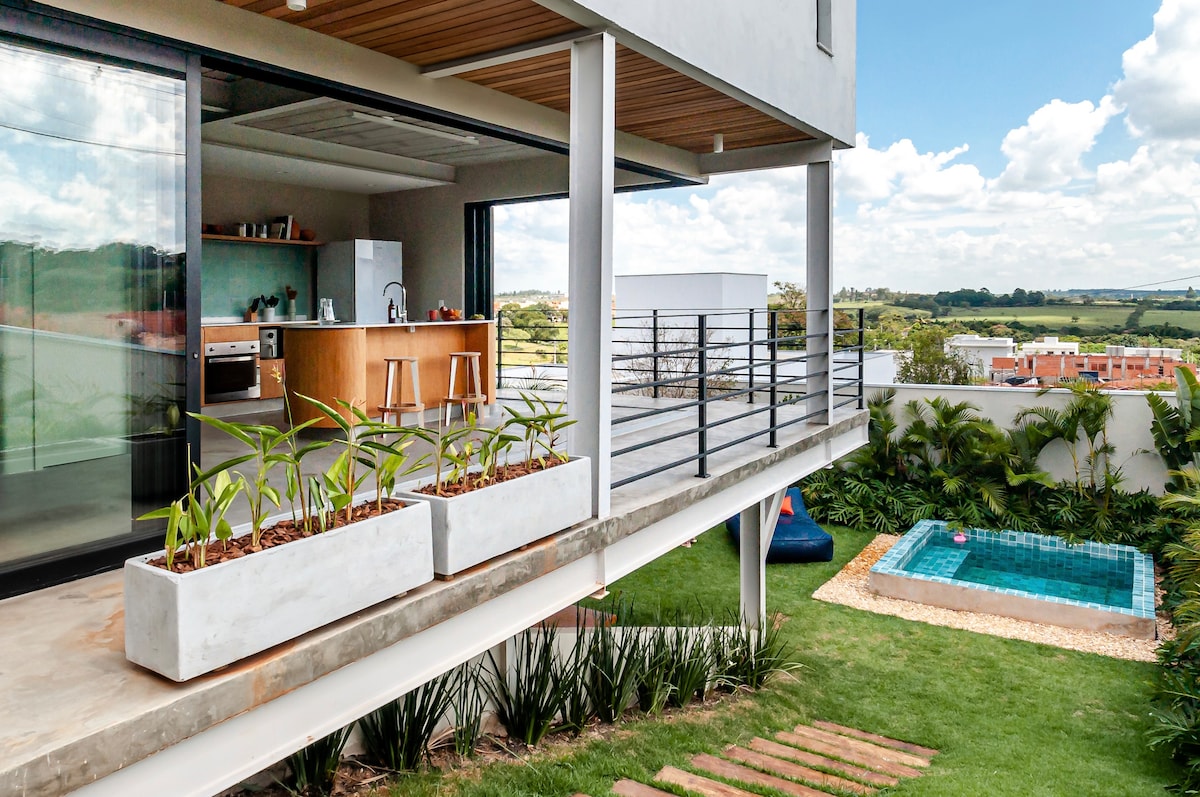 带泳池的房子,2间卧室,3间浴室和绿色景观
