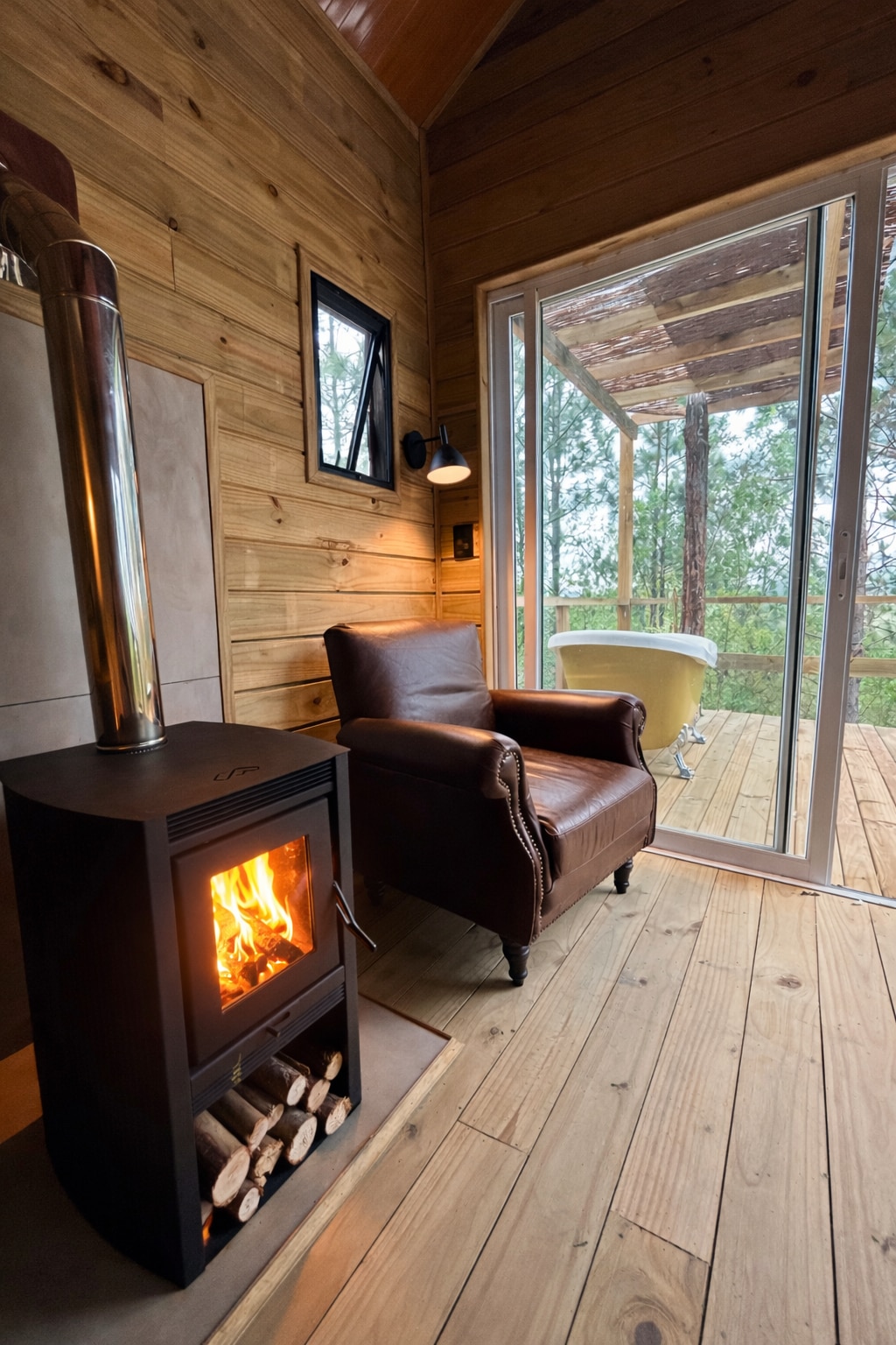 NOVO !!! 🌿Viva o luxo do simples ! A Cabana Encantada é um refúgio romântico entre pinheiros, com lareira e banheira para momentos de puro relaxamento. Pensada para casais, combina privacidade, conforto e uma atmosfera acolhedora. A iluminação quente, o design em madeira e a vista para a natureza criam o cenário ideal para desacelerar. Com cozinha equipada e ambiente silencioso, é perfeita para viver dias especiais e memoráveis.🌿