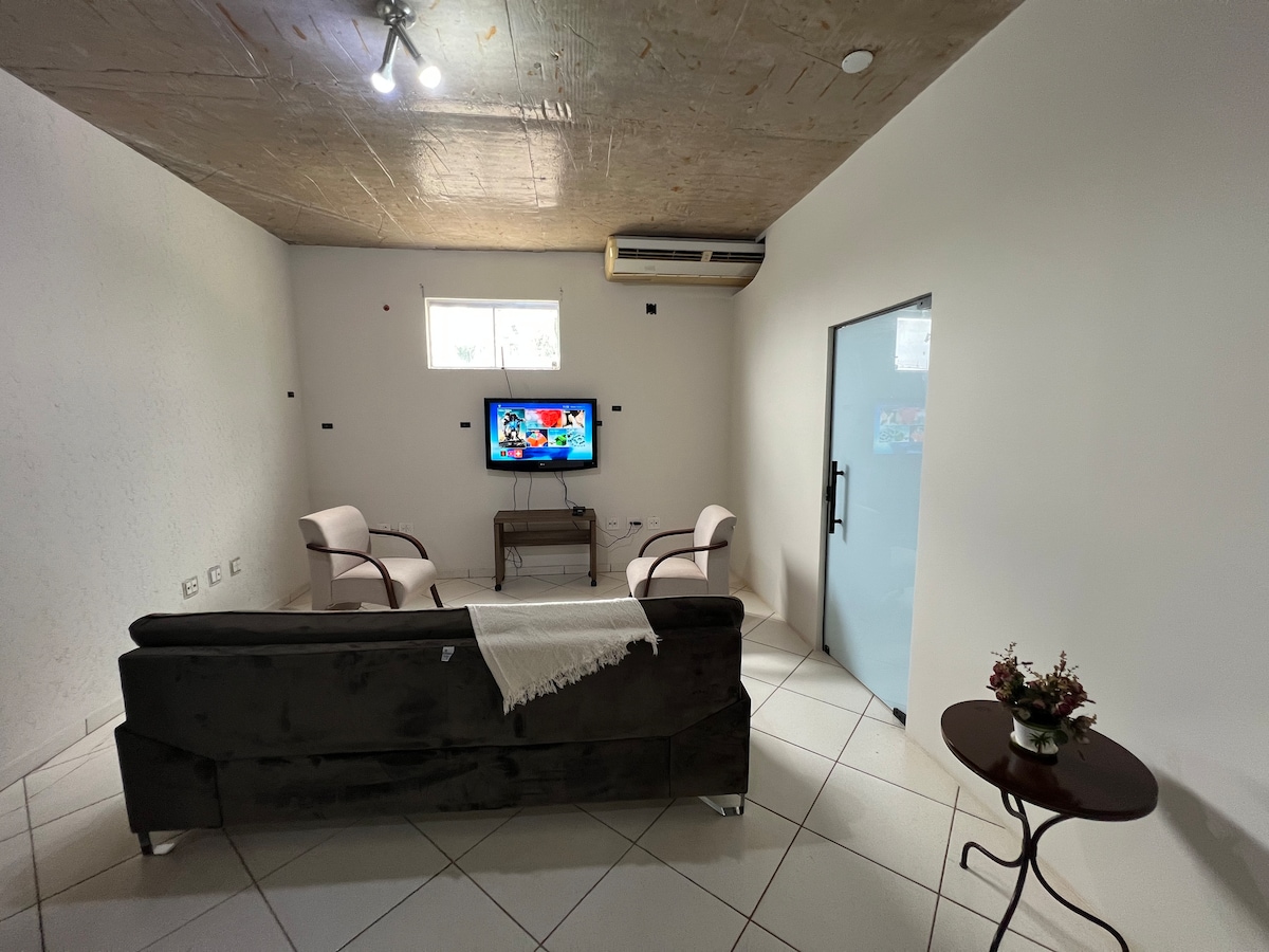 Quarto, sala e banheiro. Muito bem localizado no Centro de Ituiutaba-MG. Excelente localização, próximo ao shopping Pátio Cidade (1 quadra), tem também bem próximo a o Point Grill restaurante e choperia (1 quadra) e a Famoso Pão Padaria (1 quadra). Por perto tem farmácias, lojas em geral e bancos, e também está bem próximo do Paiol Bar e Restaurante (2 quadras). Indicamos também a Bom dia Padaria para o melhor lanche da cidade.