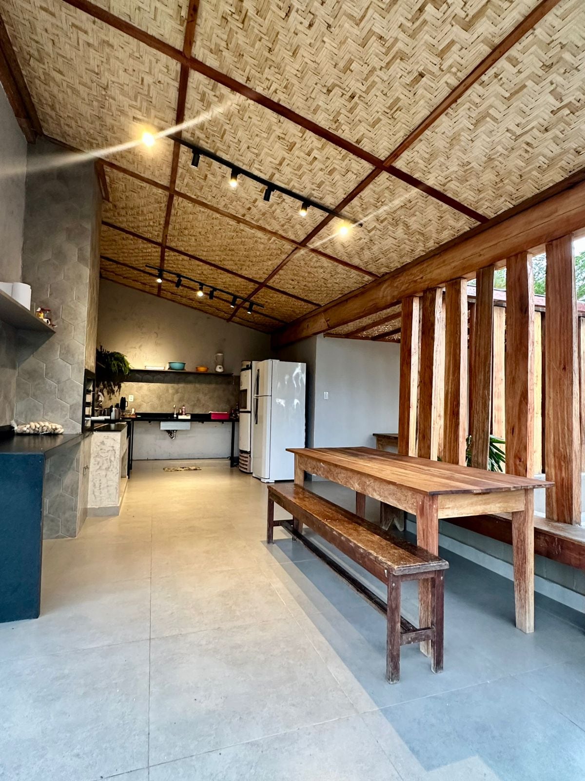 A casa é rústica e ampla, construída com materiais de demolição e materiais locais. Possui fogão a lenha e a gaz e aquecedor solar para banho. Lugar é silencioso, com lindas paisagens, pequizeiros, lobeiras, ipes, bromelias, candeias, jacarandás, seriemas, lobos, tucanos, corujas, vagalumes, pássaros e borboletas. Não possui luz elétrica o que proporciona um descanso profundo e grande integração com a natureza. No local existem poços e quedas d'agua mineral que vem diretamente das nascentes.