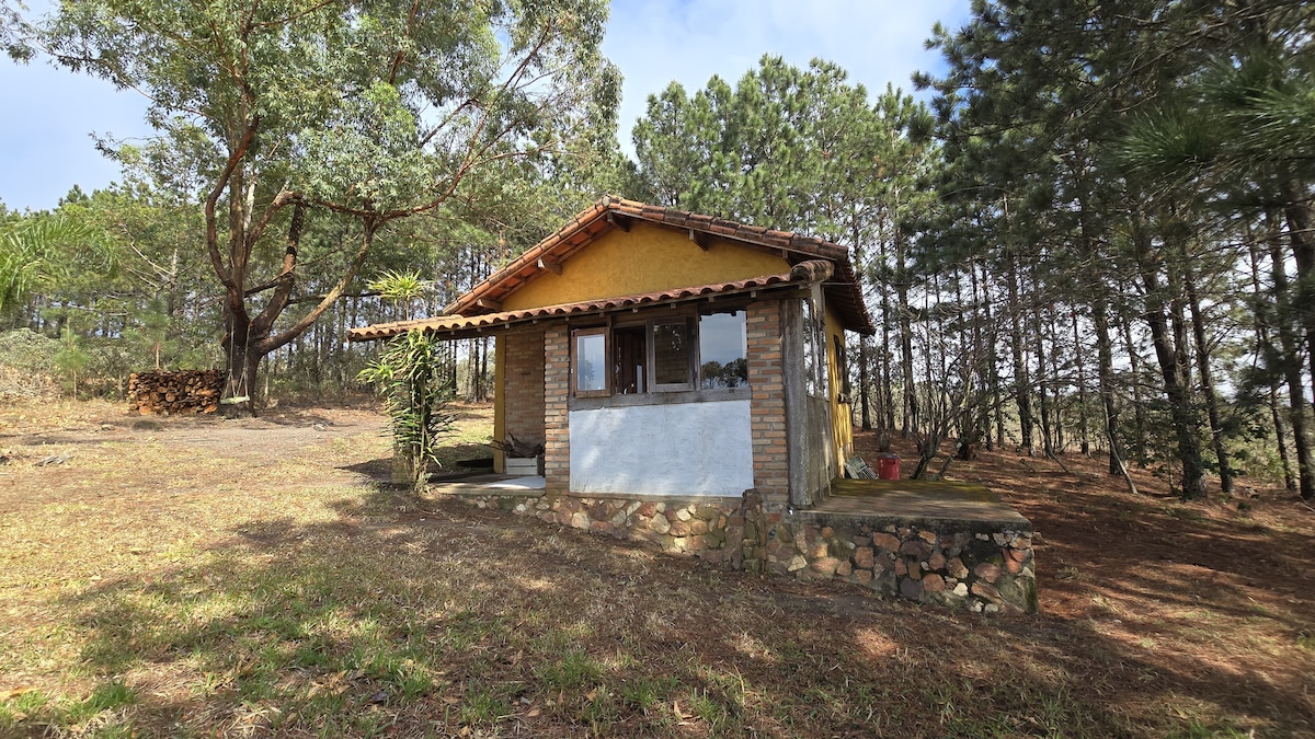 É um chalezinho muito reservado, com medidas pra atender até três pessoas com conforto, sendo estes, lareira, 1 cama casal, 1 cama solteiro, sala/quarto, Wi-fi, 1 banheiro (com teto de vidro), chuveiro elétrico, cozinha (frigobar, filtro na torneira, copos, vasilhas, talheres, potes vazios), churrasqueira, varanda com vista panorâmica.